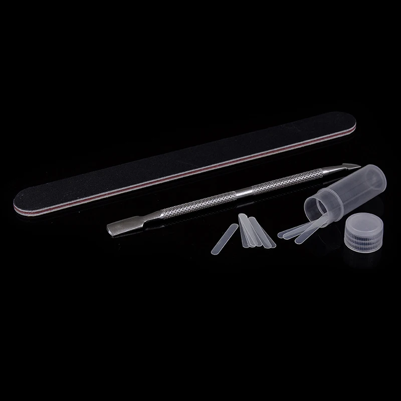 Включает в себя пластырь для ногтей, толкатель для ногтей, пилку для ногтей