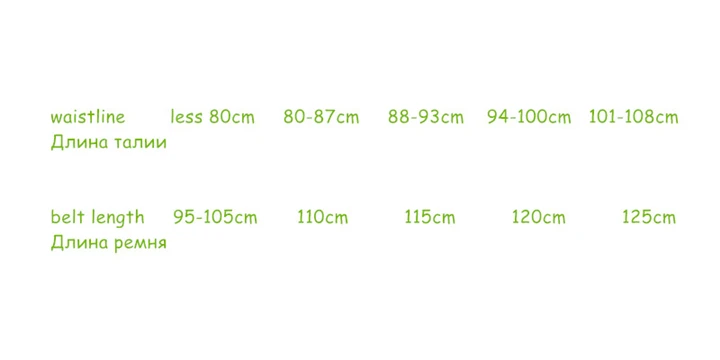 3. Пояс: 90 см/95 см/100 см/105 см/110 см/115 см/120 см/125 см/130 см.