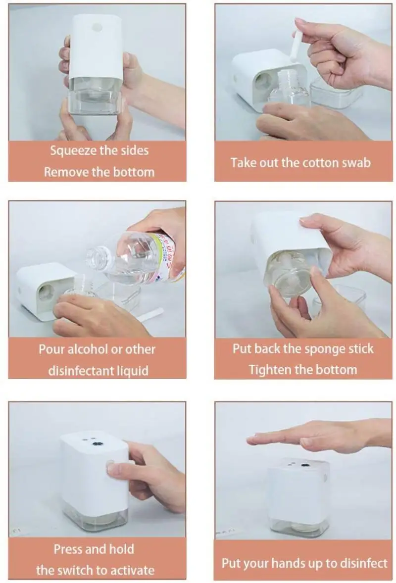1. Заполните контейнер спиртом 75 градусов или другими жидкостями. Примечание: он должен быть жидким, в противном случае он не может быть распылен.