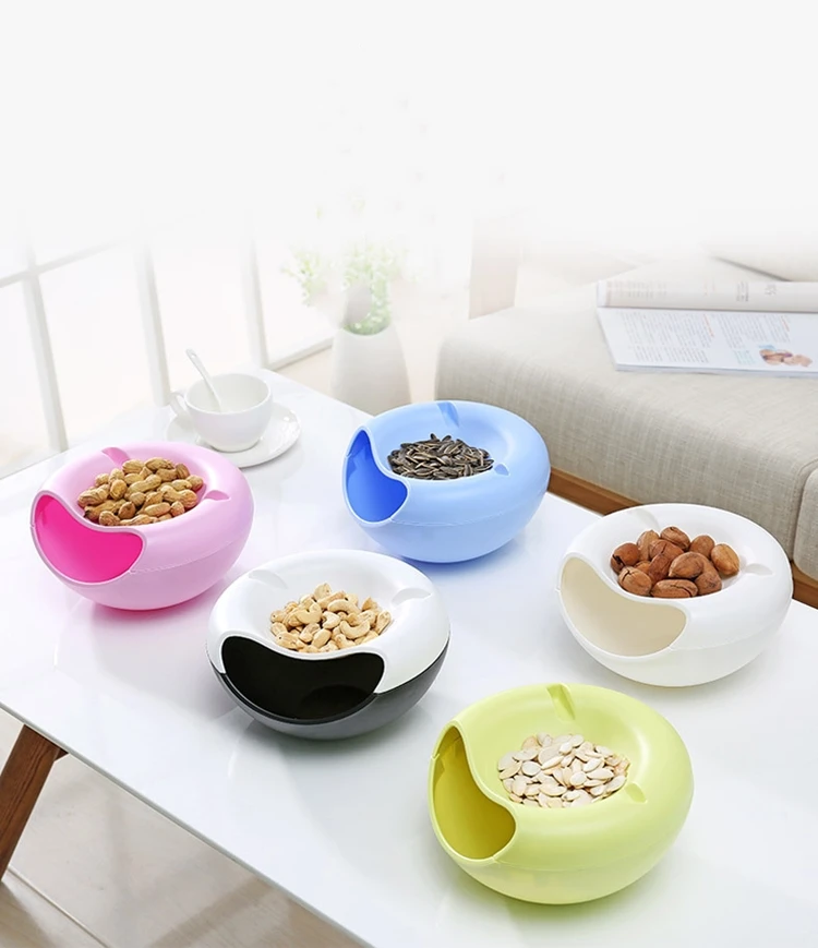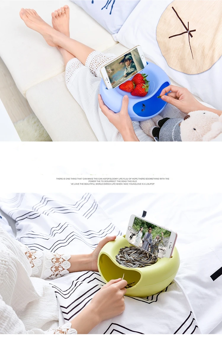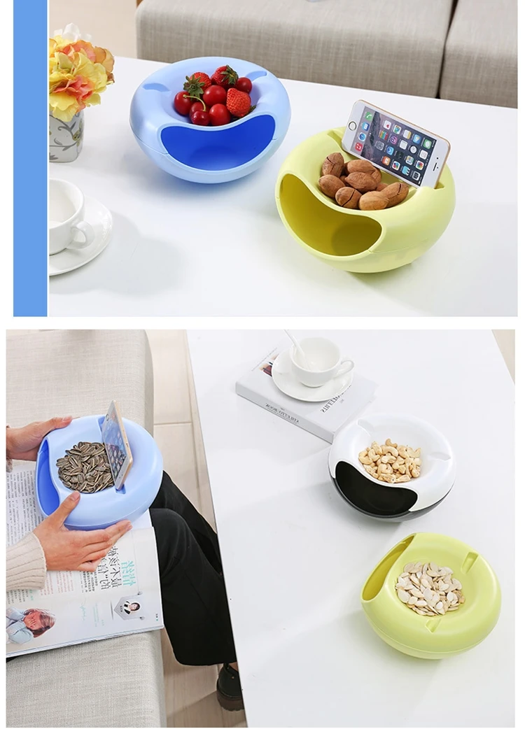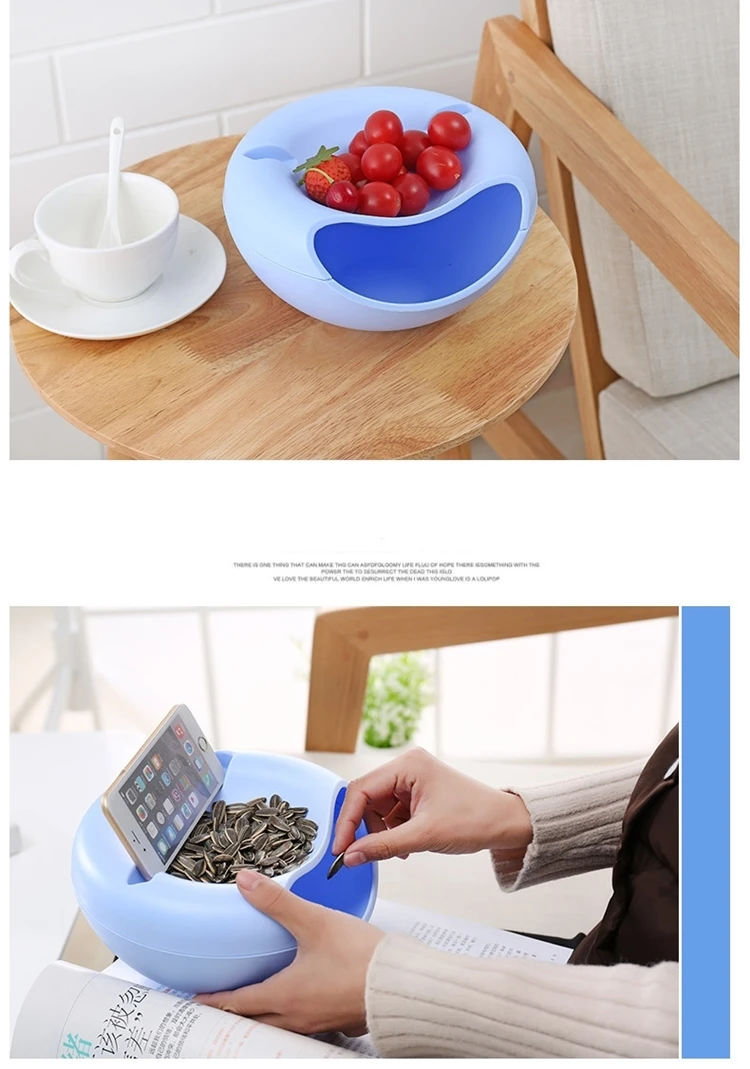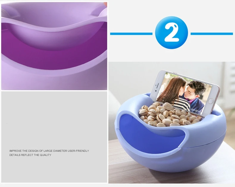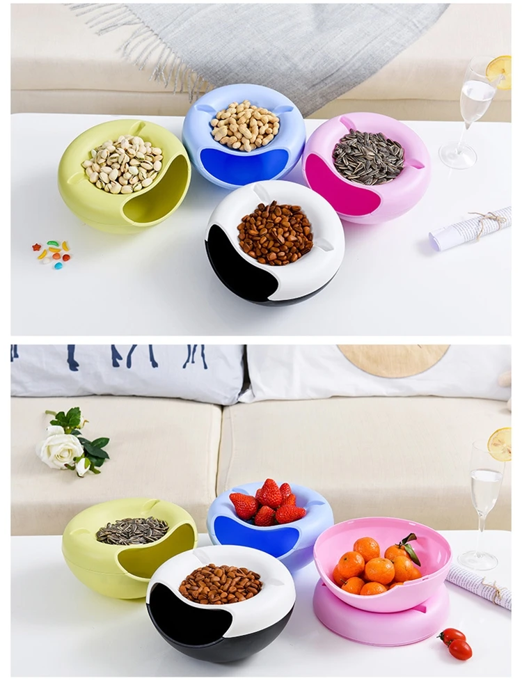 Название: ленивая коробка для хранения еды для перекуса Материал: пищевой полипропилен Размер: 21*11 см Особенности: Двухслойный дизайн, тонкая работа. Положите еду на верхний слой и шелуху на нижний слой, который удобен в использовании. Уроните шелуху во время еды Характеристики продукта: нетоксичный, безвкусный, низкая плотность, хорошая прочность