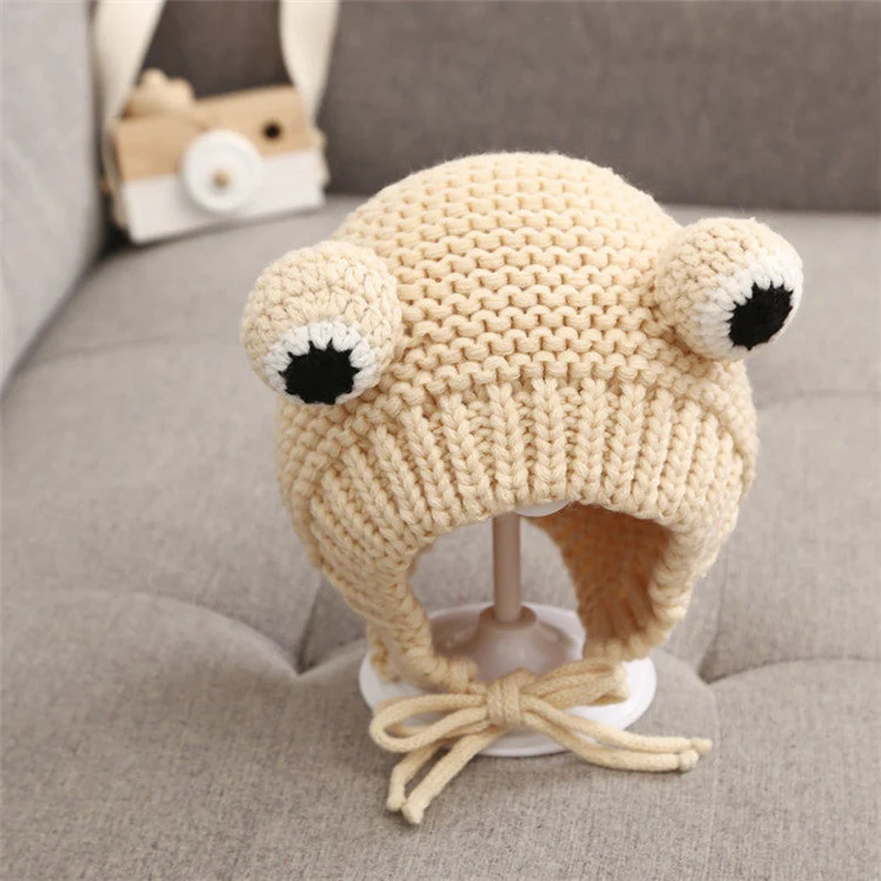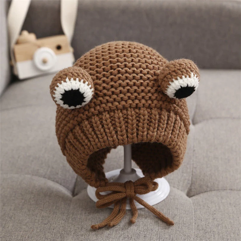 1. Introduction - This is a knitted hat with frog figure. It has a full cap design, which would cover the ears to keep warm.