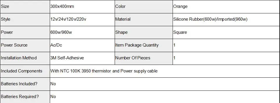 С 1 метром NTC 100K 3950 Термистор для контроля температурыПожалуйста, не тыкайте новые отверстия для этой кровати, так как вся прокладка является схемой, поэтому она будет 100% повредить цепь, если Вы тыкаете новые отверстия в любом местеЭто электричество и тепло, с которыми вы справляетесь. Мы абсолютно ваш правильный выбор с 100% гарантией для высококачественных нагревателейКорреляция между плотностью ватт и скоростью повышения температуры