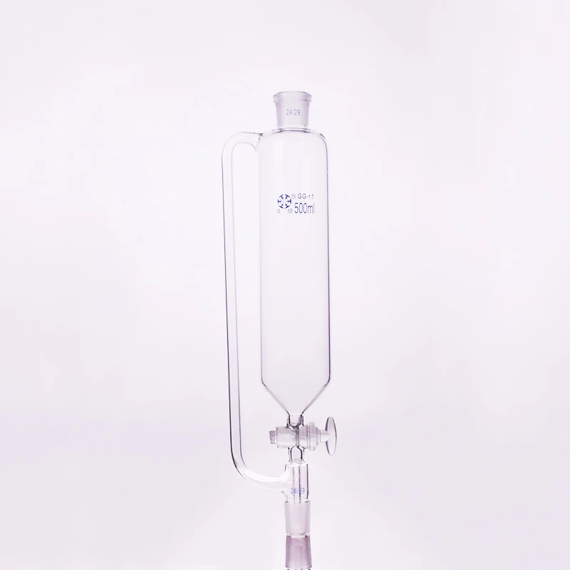 Сепараторная Воронка цилиндрической формы постоянного давления, стандартная заземляющая горловина. Емкость 500 мл, соединение 24/29 + 24/29, стеклянный переключатель