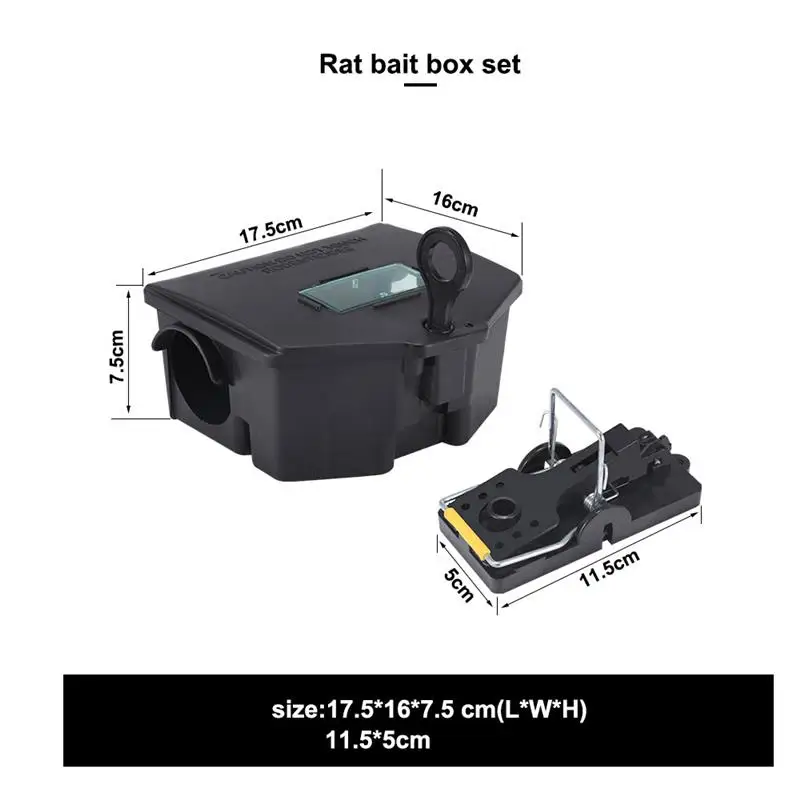 Изготовленный из высококачественного пластика, этот набор для наживки крыс отличается высокой прочностью, хорошей прочностью, твердой текстурой, устойчивостью к эрозии дождя, высокой температурой и низкой устойчивостью к холоду и длительным сроком службы.