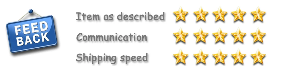 Ваши отзывы очень важны для нас, чтобы сделать лучше. Поэтому, пожалуйста, оставьте отзывы 5 звезд, если вы удовлетворены нашей продукцией. Большое спасибо! Пожалуйста, свяжитесь с нами, чтобы получить лучшее решение, прежде чем вы оставите нейтральный или отрицательный отзывы, если у вас есть какие-либо проблемы с примеркой или качеством. Мы ответим на все сообщения в течение 24 часов, заранее спасибо за сотрудничество!