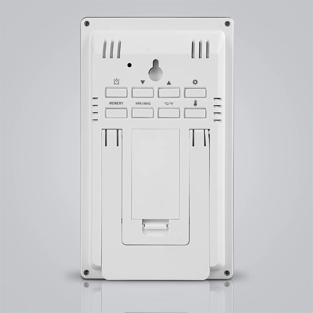 Термометр и гигрометр и барометр: Он отображает внутреннюю и наружную влажность и температуру (переключаемый блок °C/°F), барометрическое давление (переключаемый в диапазоне инхг или МБ/гПа), И он также отображает тренд температуры, влажности и барометрического.