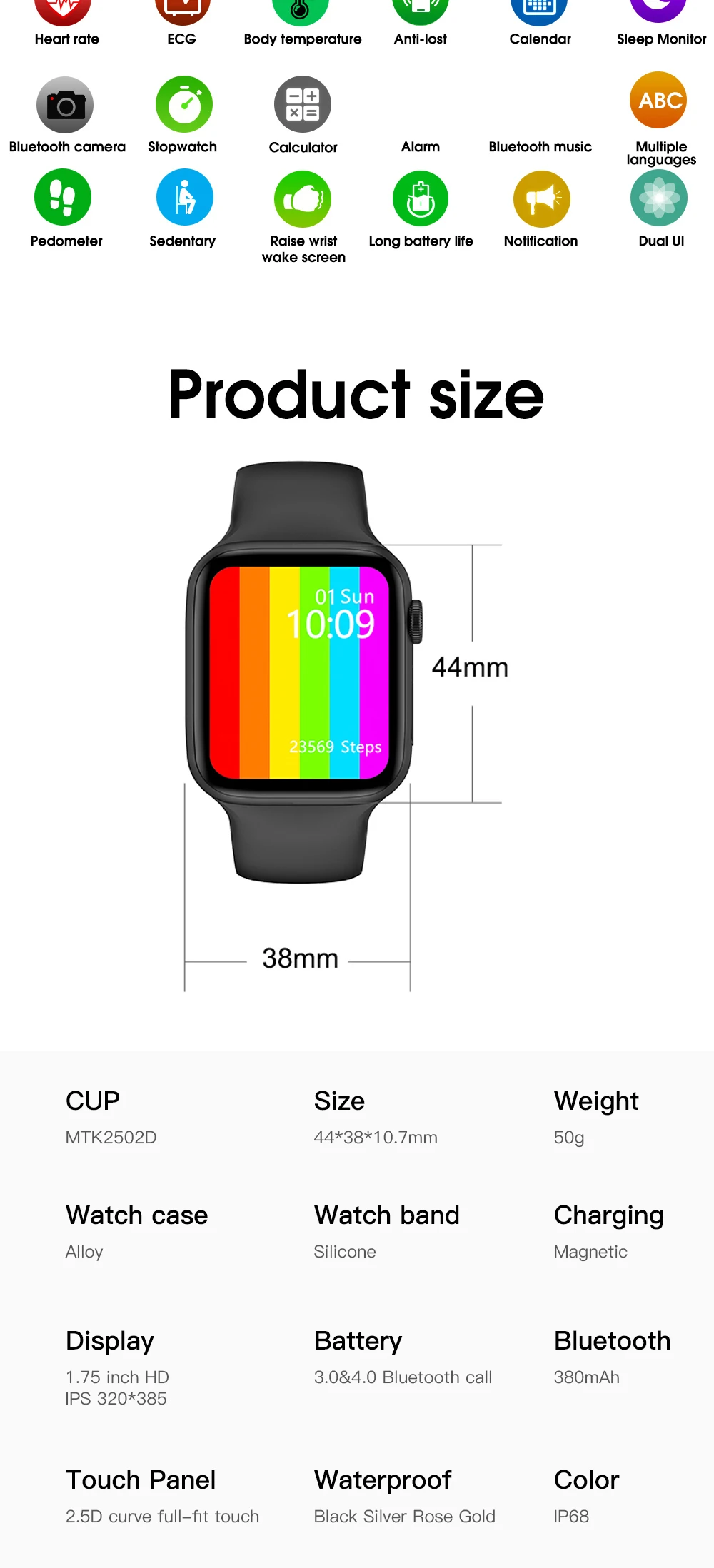 Беспроводное зарядное устройство, Bluetooth Вызов, температура тела, частота сердечных сокращений, BP & ECG. Шаги, оригинальный 6-й размер, 44/40 мм сменные полосы, сотовое меню, IP68 водонепроницаемый.