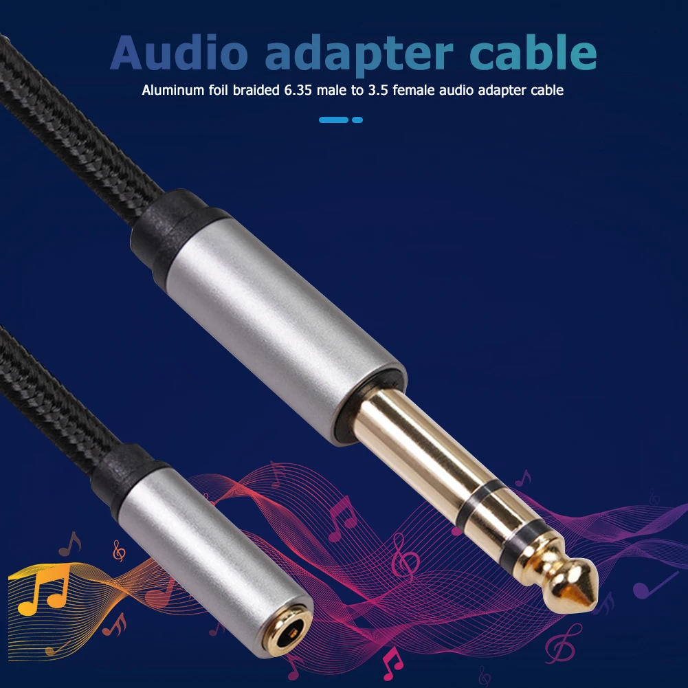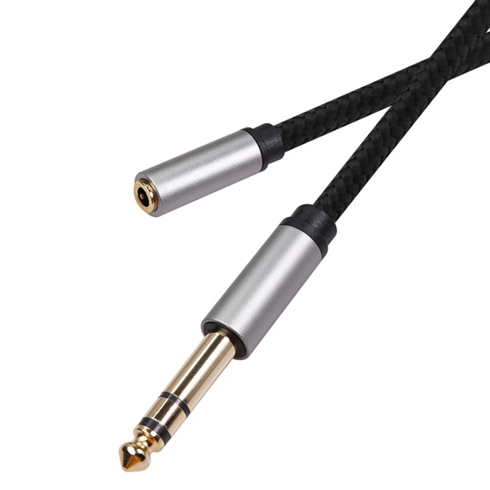 3,5 мм Женский до 6,35 мм штекерПлетеныйКабель Позолоченный разъем TRS 1/8 дюйма разъем 1/4 дюйма штекер стерео аудио адаптер для наушников усилитель гитарный телефон ПК