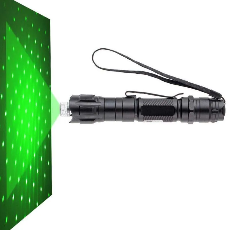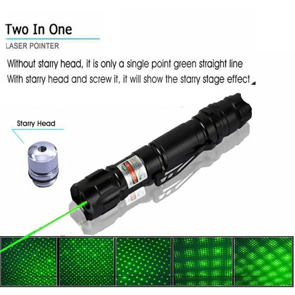 Option10-12: включая лазер + 5 * звездообразных колпачков + 1 * аккумулятор 18650 + 1 * зарядное устройство + зеленая коробка