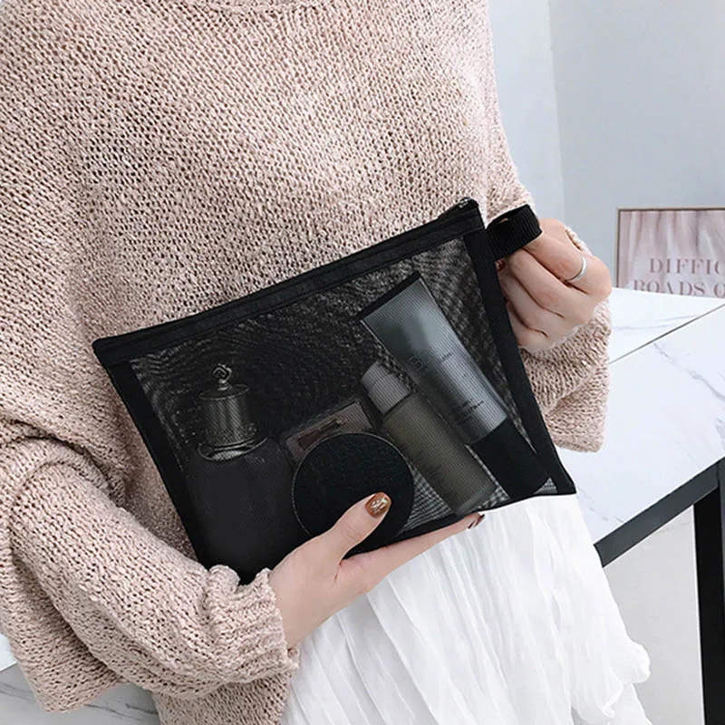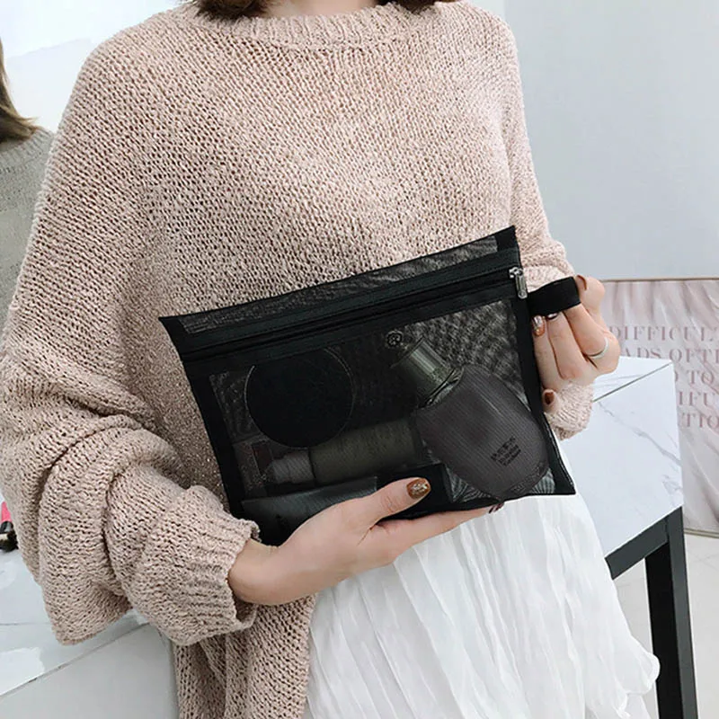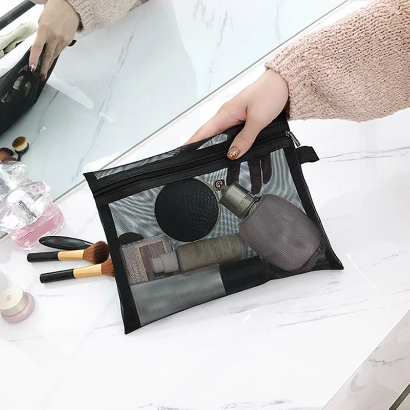 Косметички на молнии, сетчатые сумки для макияжа, чехол для карандашей, Дорожный Чехол Для Хранения Туалетных принадлежностей, магазин NYZ
