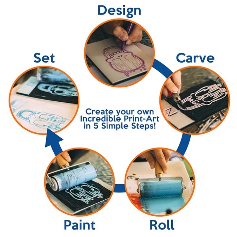 Использование: Вырежьте желаемую форму, затем нанесите ее водорастворимой и масляной чернилами для печати блоков.