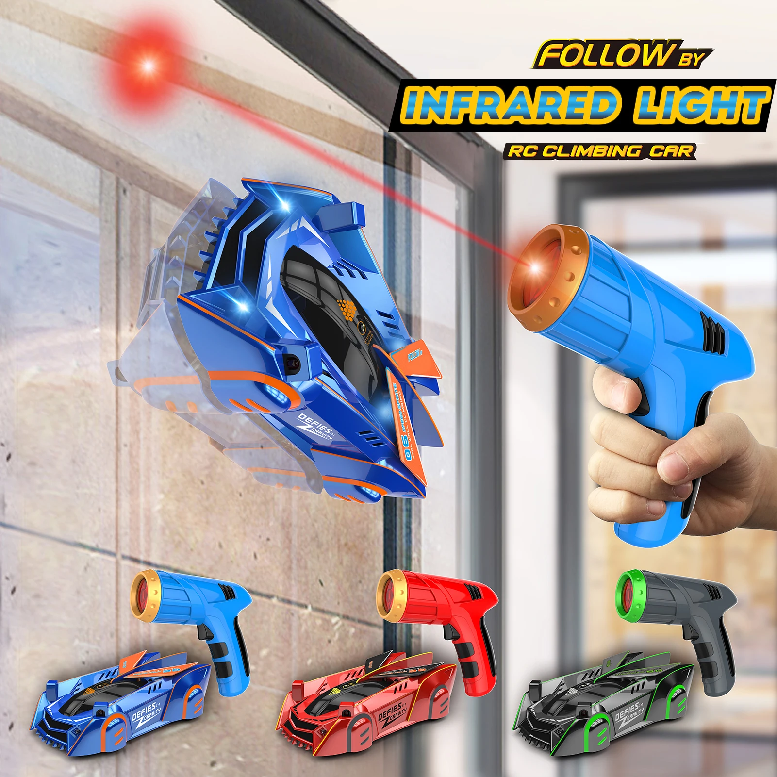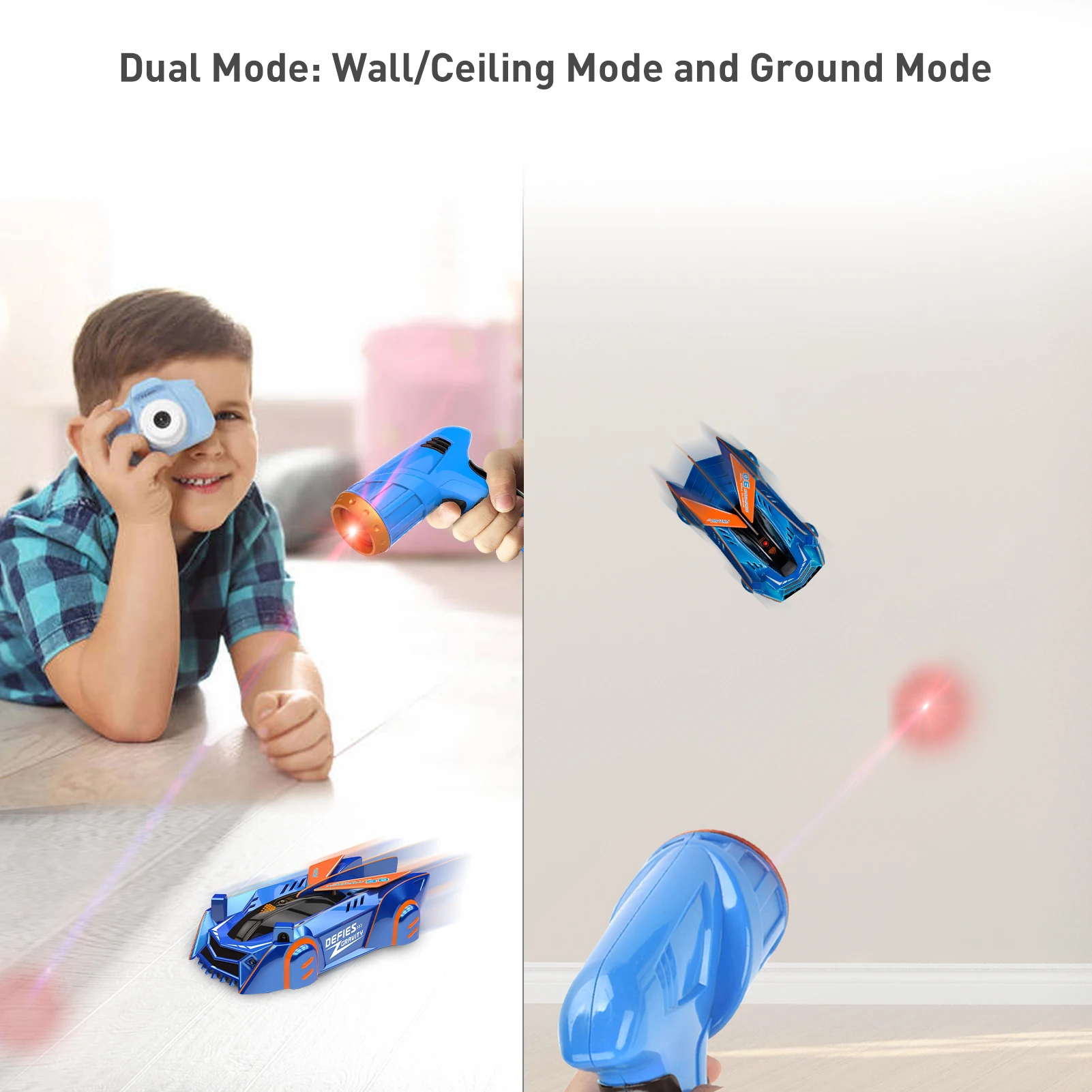 Двойной режим: режим стены/потолка и режим заземления, альпинистская машина может непрерывно двигаться на любых гладких поверхностях. Выбирая режим «стена/потолок», вентилятор в нижней части может сосать автомобиль на стене, а автомобиль может играть на стенах, потолках, окнах, зеркалах и шкафах. Выбирая режим заземления, автомобиль работает только на земле.