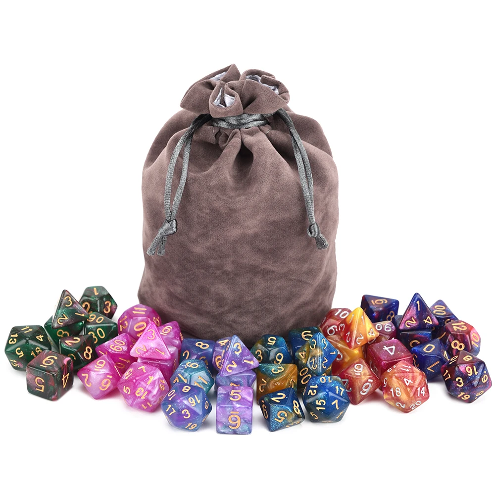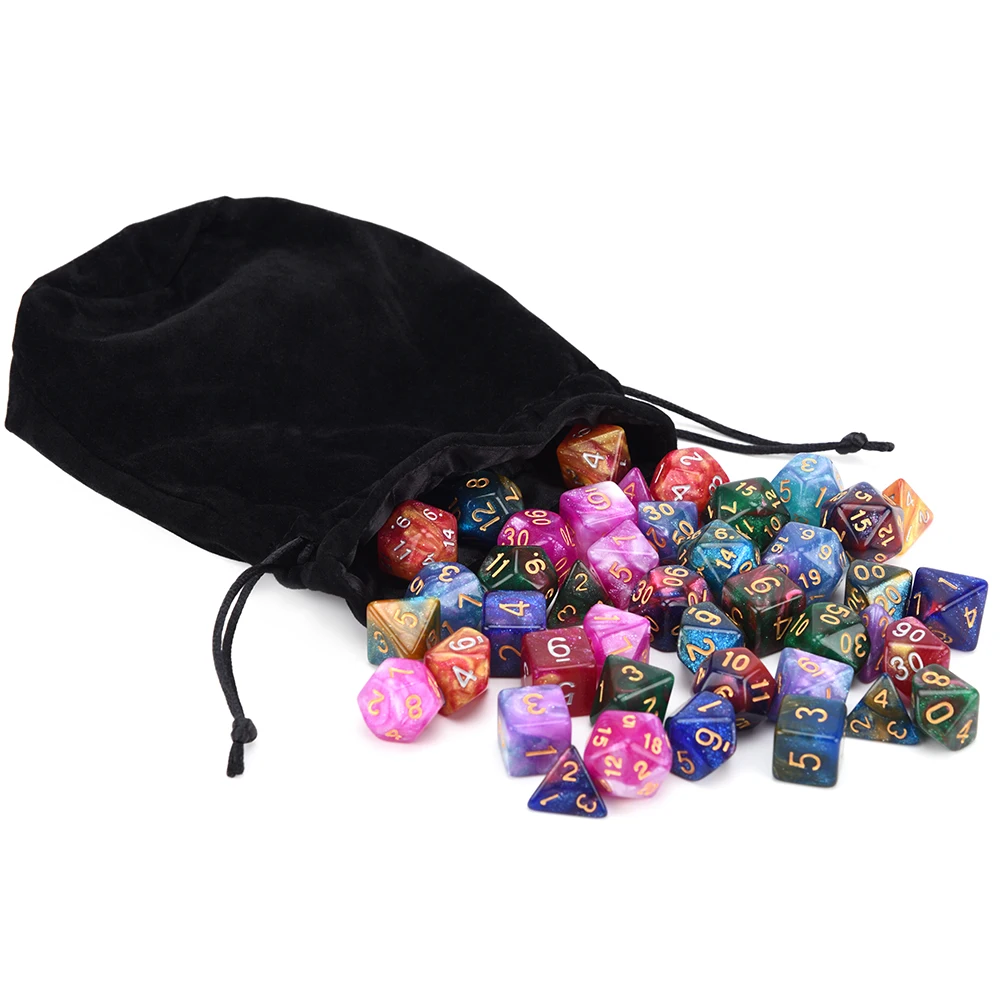 6 наборов игральных костей + 1 сумка в кости (премиум-сумка в виде глаза Дракона или большой бархатный мешочек) для выбора.