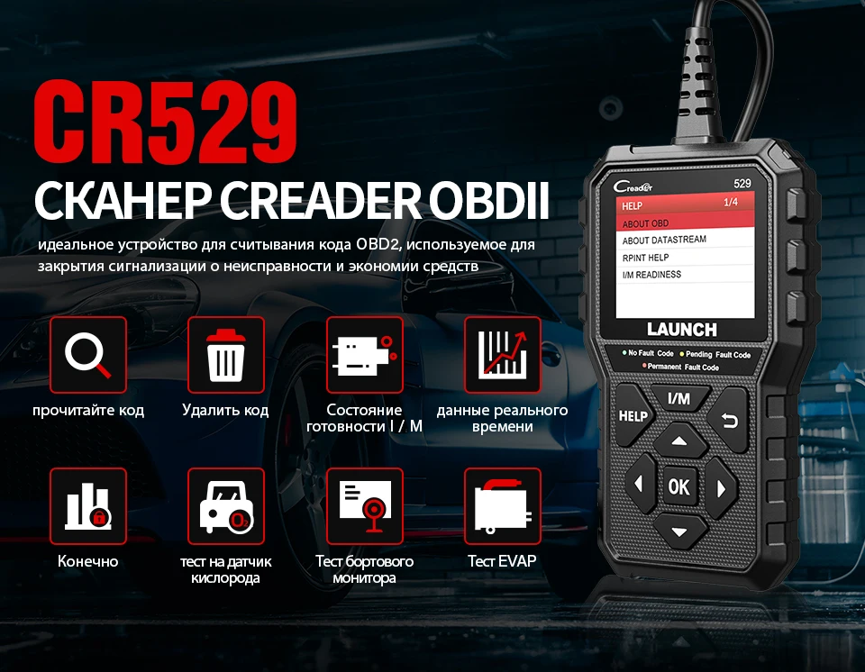 LAUNCH CReader 529 DIY OBDII сканер для двигателя