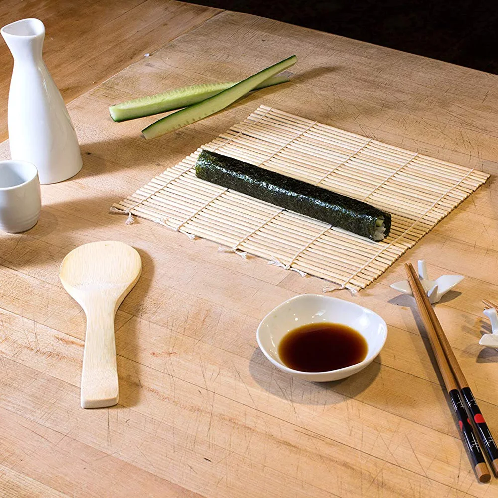 Материал: Moso бамбук Цвет: натуральный цвет s Размер: прокатный коврик: 24*23,2 см, ложка для суши: 13,8 см