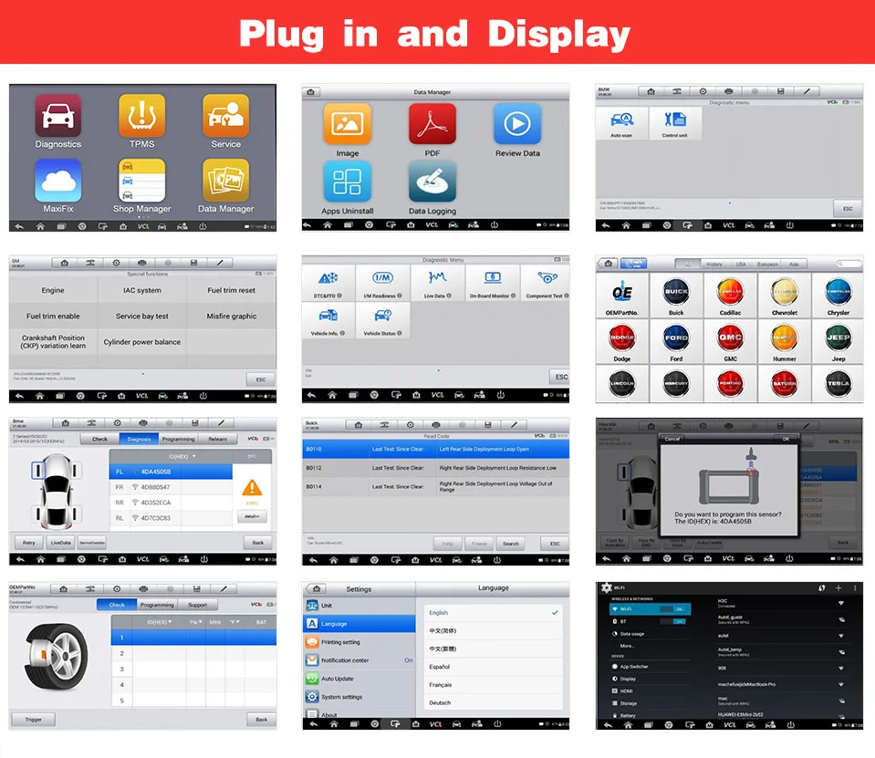 Autel MP808TS может получить доступ ко всем автомобильным системам и подсистемам, таким как кузов, шасси, силовой агрегат, сеть и т. д., для выполнения комплексного сканирования на ECUs для обнаружения неисправностей и извлечения DTCs.