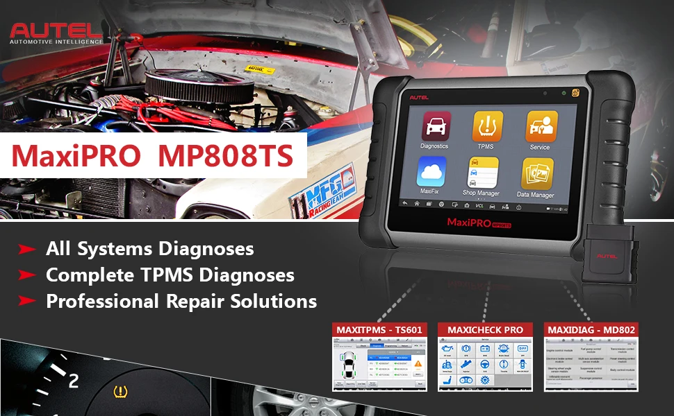 Autel MaxiPRO MP808TS-это высококлассный полносистемный диагностический сканер, характеризующийся полносистемными диагностиками, предоставляющий сервис TPMS, а также другие мощные специальные службы сброса для устранения проблем с автомобилем, И предоставление точных результатов тестирования состояния вашего автомобиля: