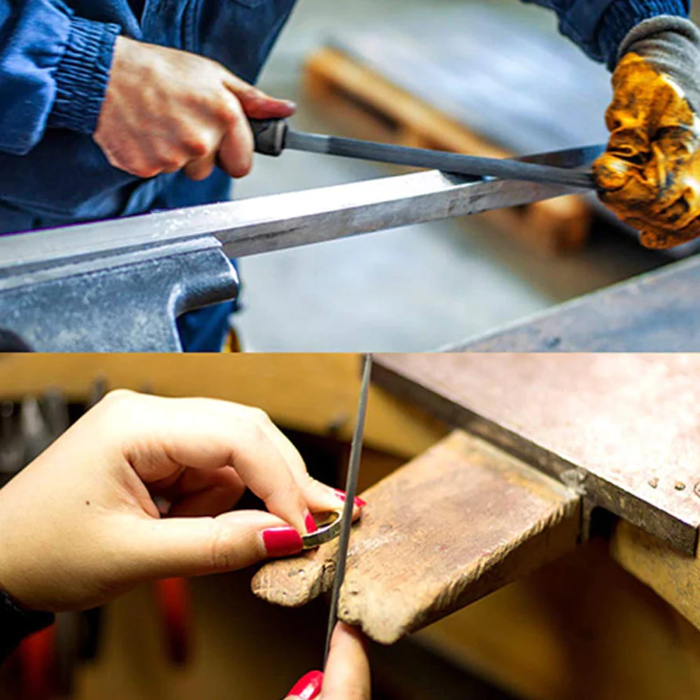 Особенности: Высококачественная кованая легированная сталь: 4 высокоточных больших файла изготовлены из кованой легированной стали T12, 12 игл-файлов изготовлены из подшипниковой стали GCR15, высокая температура закалки на поверхности файлов приводит к более высокой прочности и лучшей износостойкости. Значение посылка: 17 шт. файл, есть 4 шт. 8 "инженер файлы, без каблука, треугольник, полукруглый, круглая форма для девочек 12 предметов в наборе, 4,2" точный игольчатые напильники квадратной, круглый конус, выравнивание, кольцо, защита, треугольная форма, 1 многофункциональная щетка, Для чистки сверл и материалов, таких как металл, дерево, пластик, стекло, керамика и кожа. Удобные и плотные ручки-мягкие резиновые ручки обеспечат вам лучшее удержание каждого файла, позволяя вам работать дольше, не уставая. Портативная сумка для инструментов-этот набор ручных файлов поставляется с сумкой для инструментов, которая поможет организовать и защитить мини файлы и большие файлы. Ремешок на верхней части сумки для инструментов делает его более удобным и удобным для вас, чтобы носить его везде. Покупайте с уверенностью-удобная сумка для инструментов с широким разнообразием файлов позволит вам легко закончить и насладиться деревообработкой. Характеристики: Наименование: набор файлов 17 шт. Длина файла: 150 мм (мм) Толщина зуба: Средний зуб Ширина/толщина/диаметр: 3 (мм) Назначение: металлический файл Размер: 140 мм Полная длина: 140 (мм) Диаметр ручки: 10 (мм) Меры предосторожности для использования: 1. Пожалуйста, не складывайте файлы с другими инструментами. 2. Пожалуйста, всегда удаляйте мусор с поверхности файлов 3. Пожалуйста, не используйте слишком много силы, чтобы избежать поломки при использовании игл-файлов. 4. Не используйте новый файл, чтобы натереть жесткий металл с твердостью больше, чем HRC55. 5. Сначала используйте одну сторону файла, затем используйте другую сторону, когда поверхность тупая. 6. Для поковок, которые с твердым или липким песком, они должны быть заземлены на шлифовальной машине, прежде чем их можно потереть с помощью файла. Посылка включает в себя: 4 * большие файлы 12 * небольшие файлы 1 * кисть 1 * комплект Посылка включает в себя: 4 * большие файлы 12 * небольшие файлы 1 * кисть 1 * комплект