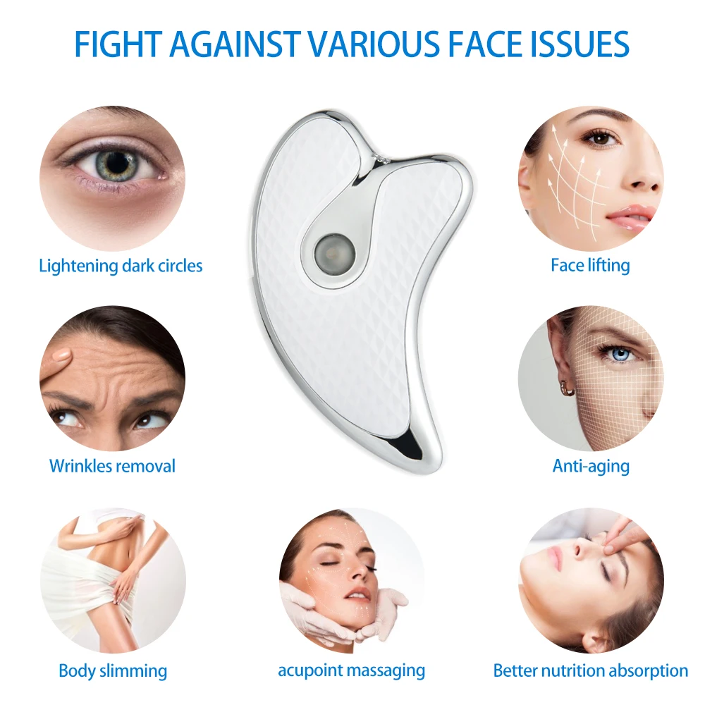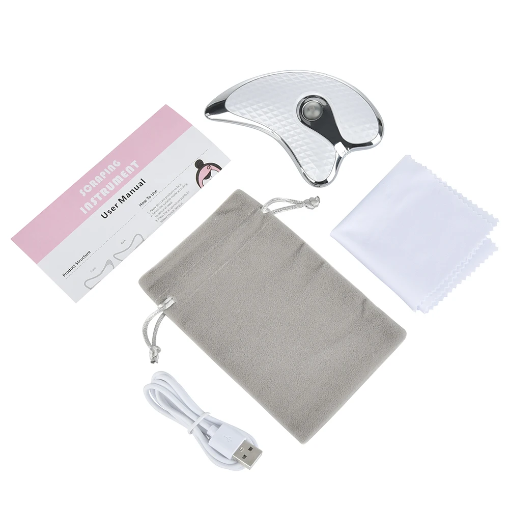 Массажная тарелка для лица, микро электрическая выскабливающая пластина, светодиодный светильник, нагрев, выскабливание, массаж лица, Вибрационный массажер для лица, шеи, тела, массажный инструмент для кожи, инструмент для красоты