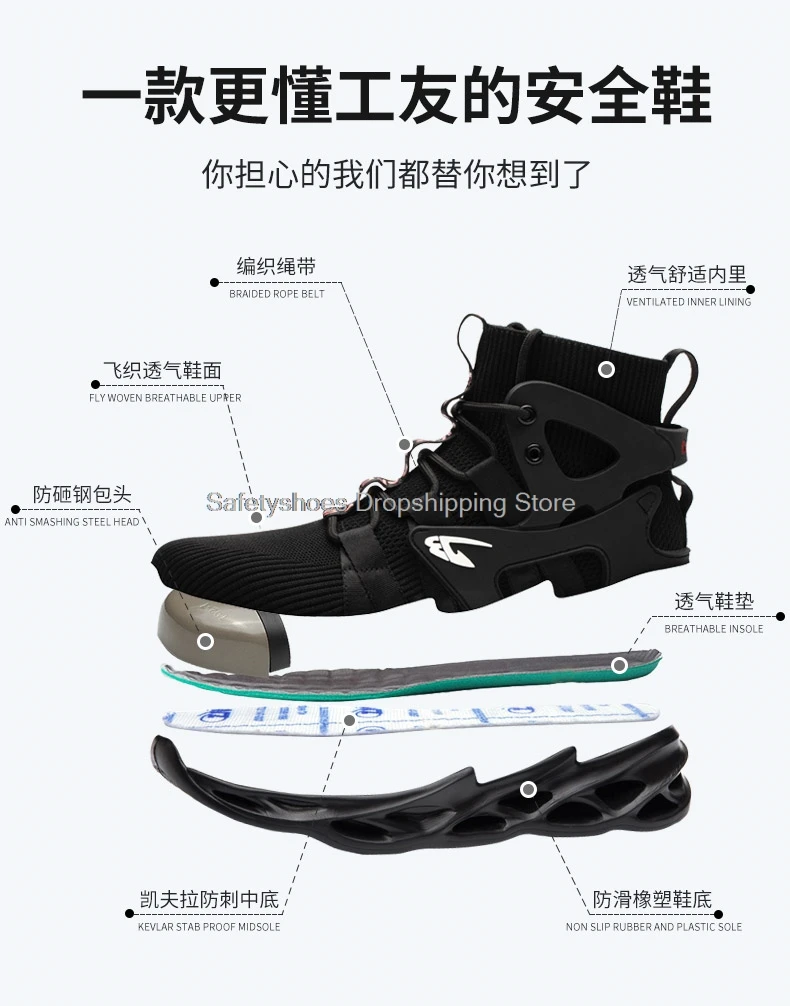 НОВАЯ безопасная обувь для мужчин, неразрушенная рабочая обувь, дышащие кроссовки, мужские безопасные рабочие ботинки, удобная безопасная обувь, промышленная кевларовая стелька