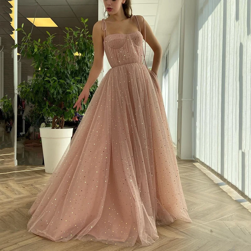 Розовое длинное платье для выпускного вечера UZN, милое платье на бретельках со звездами и блестками, платье трапециевидной формы на плиссе, Драпированное арабский вечер, платье с карманами