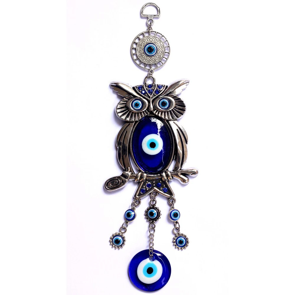 Новые украшения для дома, Современное украшение, подвеска в виде колокольчика, в турецком стиле, с изображением совы, голубого и серебристого цвета, аксессуары с кристаллами и бриллиантами