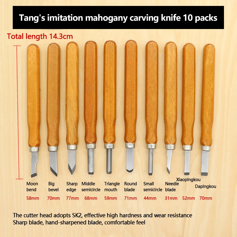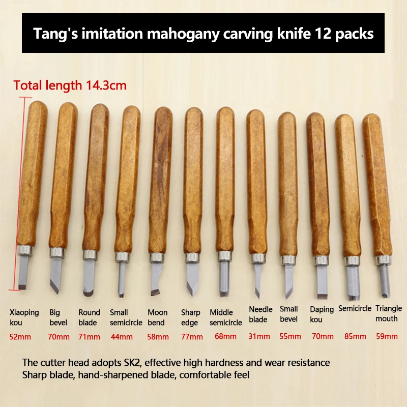Ключевые точки: Прочные и прочные: ножи для резьбы по дереву изготовлены из качественной углеродистой стали и электролитического покрытия, прочные и прочные, гарантируют долговечность, подходят для различных проектов Подходит: идеально подходит для начинающих Замечательный опыт: набор инструментов для резьбы по дереву маленький, безопасный и остается точным, подарит вам прекрасный опыт резьбы Эргономичный дизайн деревянные ручки: Эти углеродистая сталь резьба ножи с 4,3 дюйма эргономически разработаны для деревянными ручками, позволяя вам с длинной ручкой проектов комфортно, мощным сцеплением Широкое применение: подходит для деревообработки, резьбы, скульптуры, моделирования, резки, сушки и соскабливания, а также для проектов, ремесел или скульптуры из глины Особенности: Режущая головка принимает SK2, высокая твердость и износостойкость Острый край, убедитесь, что вы можете иметь приятный опыт DIY С эргономичным дизайном, вы можете чувствовать себя комфортно Соответствует вашим ожиданиям, идеальный комплект для новичка в убелении. Отлично подходит для изобретательного ребенка. Характеристики: Материал: дерево и углеродистая сталь Посылка: 3 шт., 4 шт., 5 шт., 10 шт., 12 шт., 15 шт. Посылка: в коробке Примечания: 1. Пожалуйста, учитывайте погрешность в 1-3 см из-за ручного измерения и убедитесь, что вы не возражаете перед заказом. 2. Пожалуйста, учтите, что цвета зависят как от хроматической аберрации, так и от размещения снимков. Посылка с 15 гравировальными инструментами включает в себя: 3X дуговой нож 3х конический нож 2X плоский нож 1 острый нож 1 треугольный нож 1X Наклонный нож 1 круглый нож 1 х точильный камень 1 х диагональный нож с черной ручкой 1 х коробка для хранения