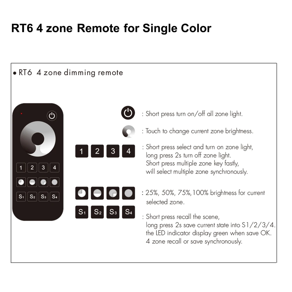 RT6: 4 зоны пульт дистанционного управления для одноцветной светодиодной ленты