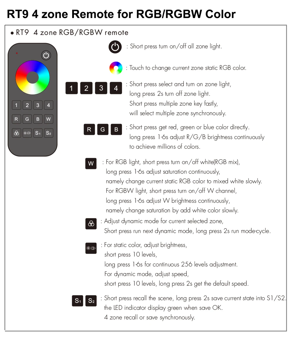 RT9: 4 зоны пульт дистанционного управления для светодиодных ламп RGB/RGBW Светодиодная лента