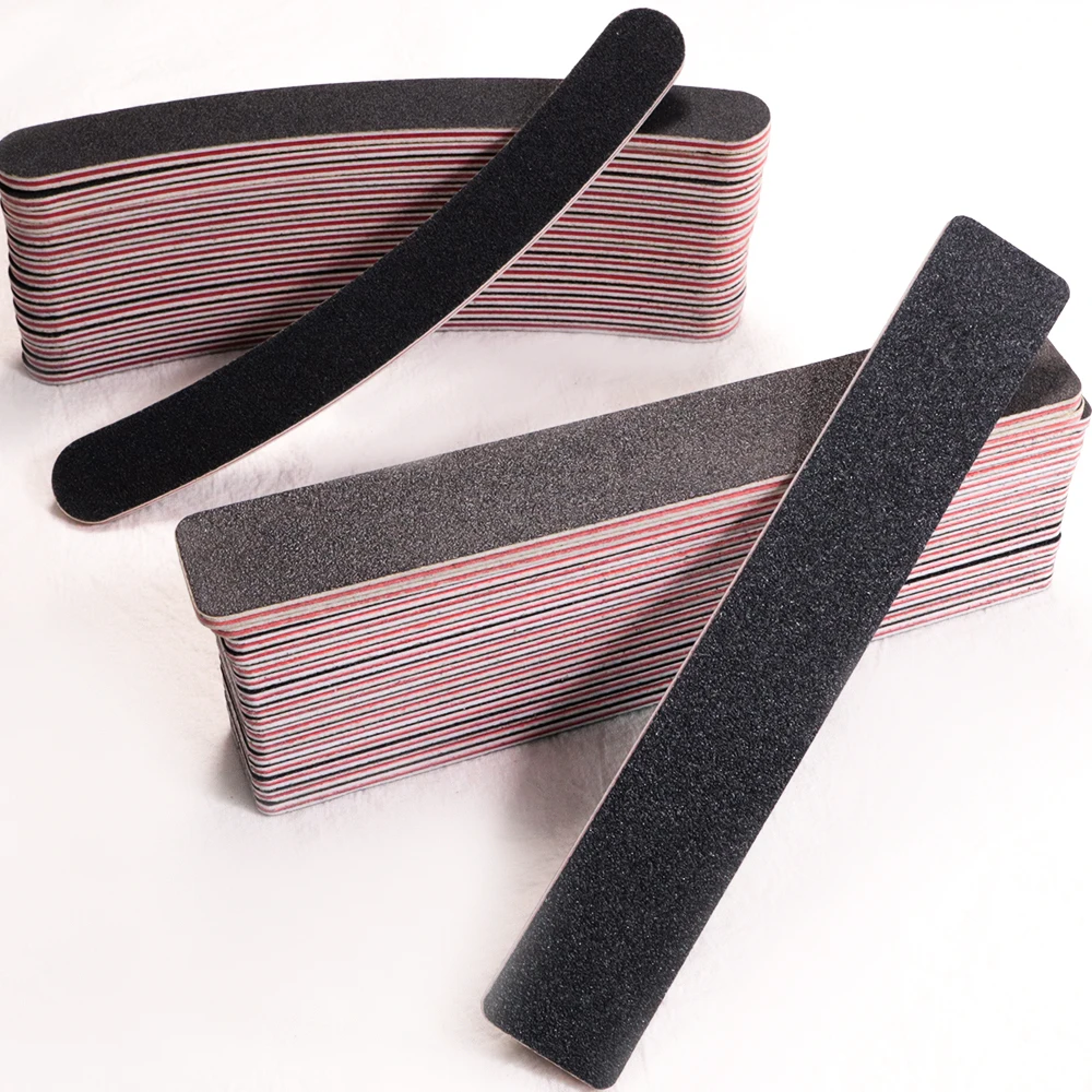 Двухсторонняя пилка для ногтей Профессиональная с черным песком и красной сердцевиной 100/180, наждачная бумага, шлифовальные инструменты для ухода за ногтями Маникюр с полировкой