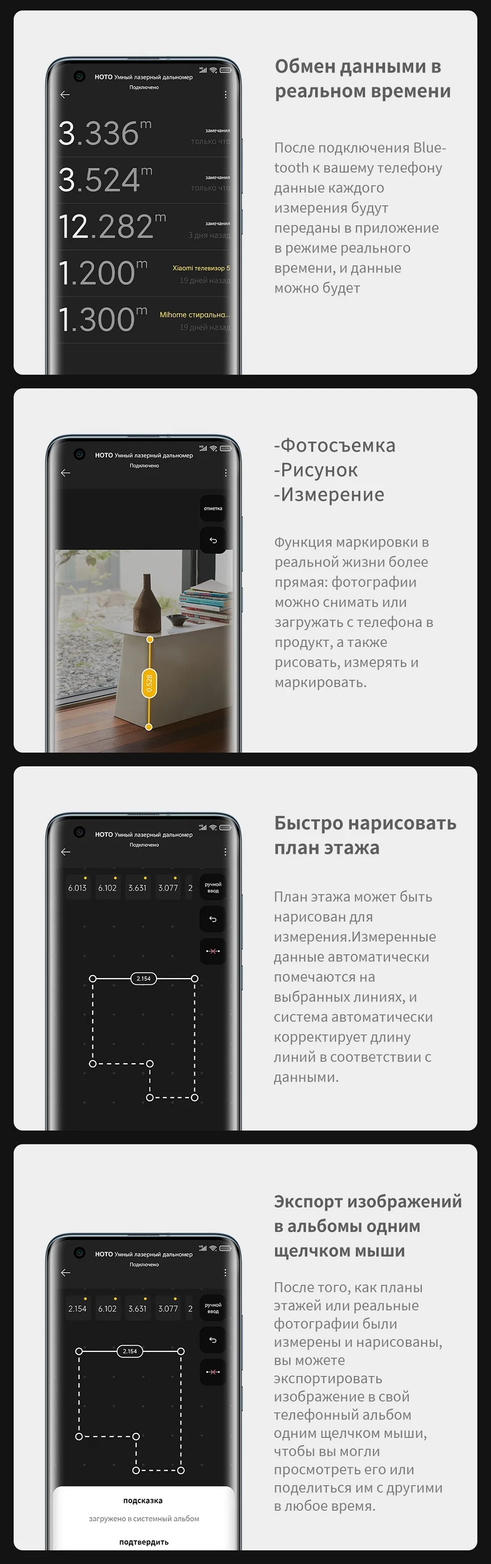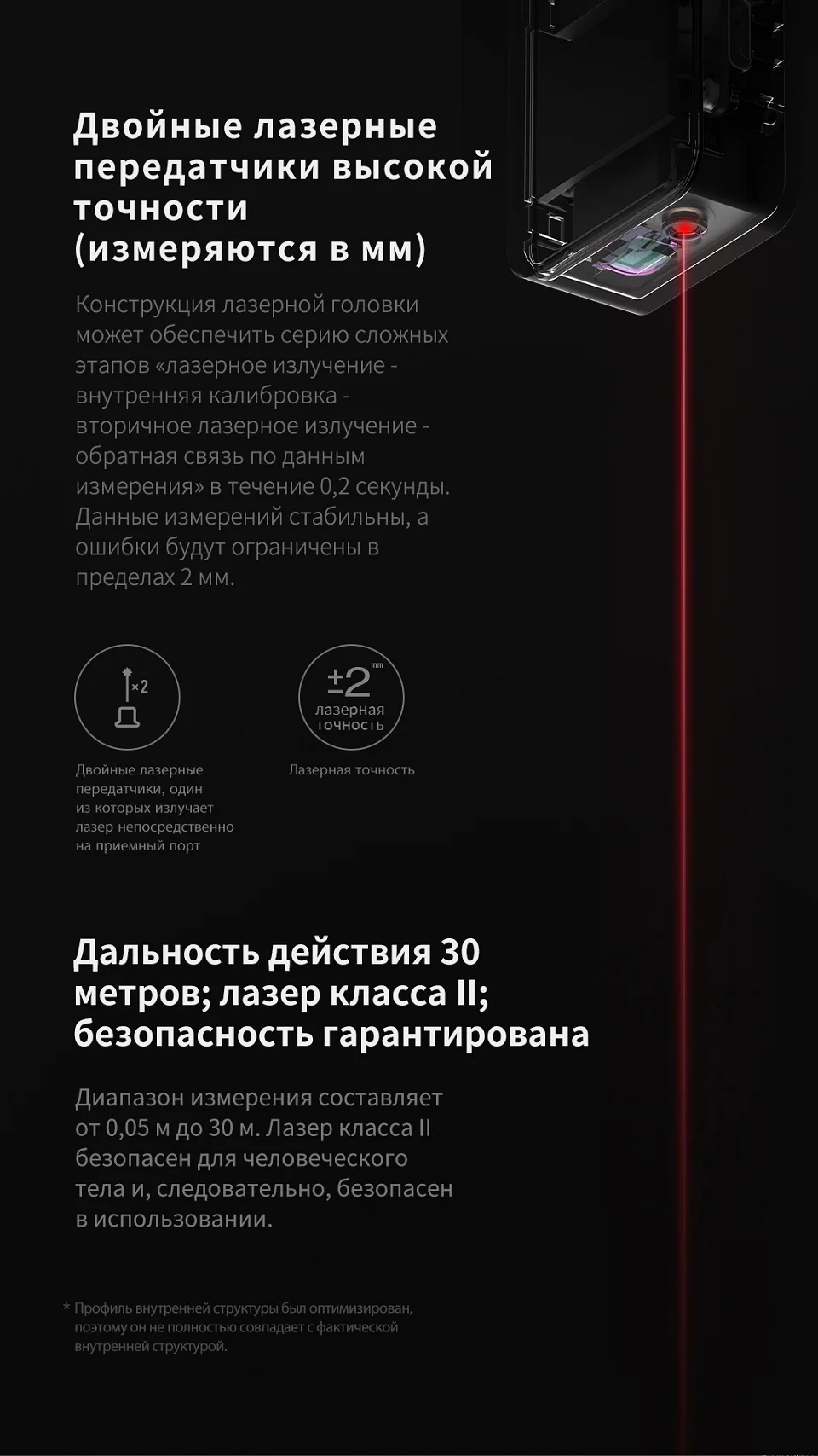 ③ Лазерный дальномер в настоящее время поддерживает только метры и ступни как единицы измерения, а не сантиметры, миллиметры и дюймы.