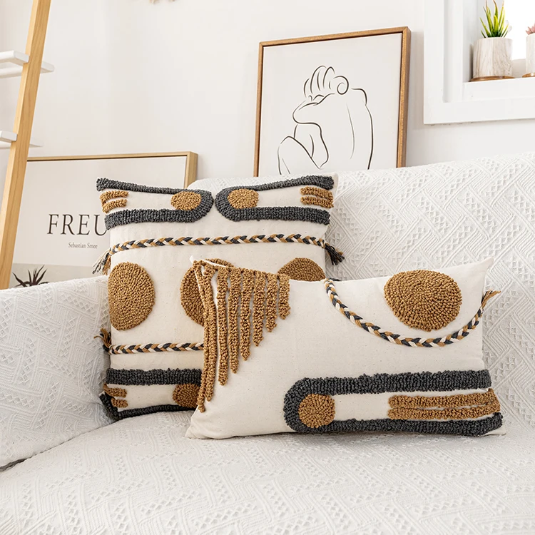 Новая ворсовая техника, мягкая и прочная. Украшение с геометрическим рисунком. Хлопковая ткань, кофейно-серого цвета