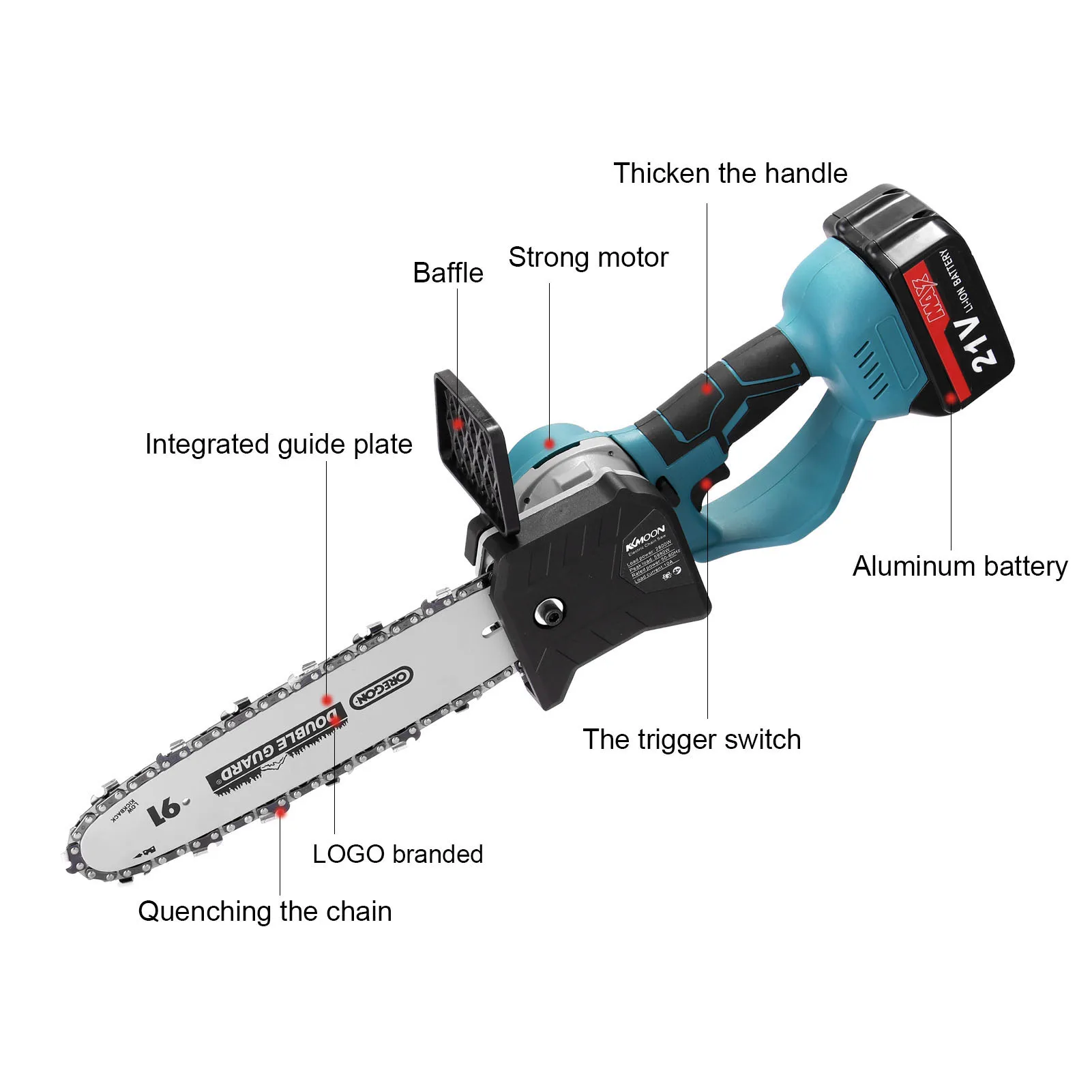 Cordless design, lightweight and portable, easy to carry out and saw the wood.
