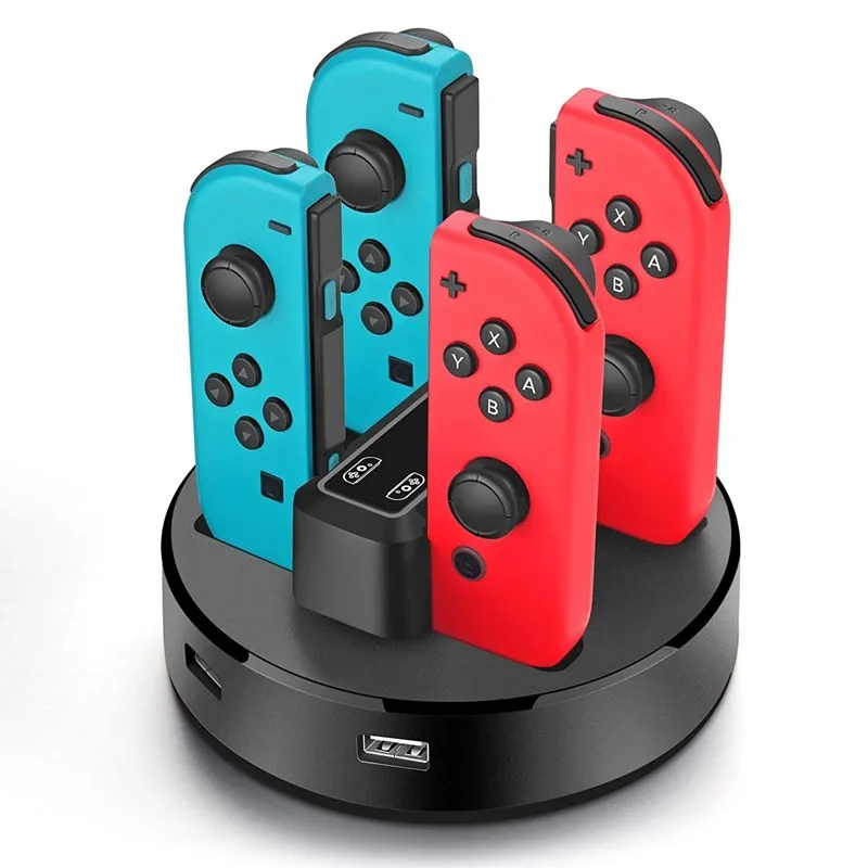 Специально разработан для зарядки контроллеров Nintendo Switch Joy-con. Быстрая зарядка 4 джойстика Joy-Con поставляется с светодиодный индикатором состояния зарядки. Красный светильник указывает на режим ожидания или зарядки. Зеленый светильник означает, что контроллер полностью заряжен. Поставляется с защитой микросхем, защитой от перегрузки по току и защитой от перенапряжения. Доступны два usb-порта. Вы можете включить до двух других устройств, таких как смартфон, bluetooth-колонки и т. Д. Компактный, портативный и светильник. Характеристики: Подходит для Nintendo Switch Joy-con Цвет: черный Материал: АБС-пластик Вход: 5 В/2 А Выход: 5 В постоянного тока 500мА * 4 Только посылка зарядного устройства Включает: 1 * зарядная док-станция, 1 * USB кабель Прозрачный жесткий чехол Включает: 1 * зарядная док-станция, 1 * USB кабель, 1 * Прозрачный чехол