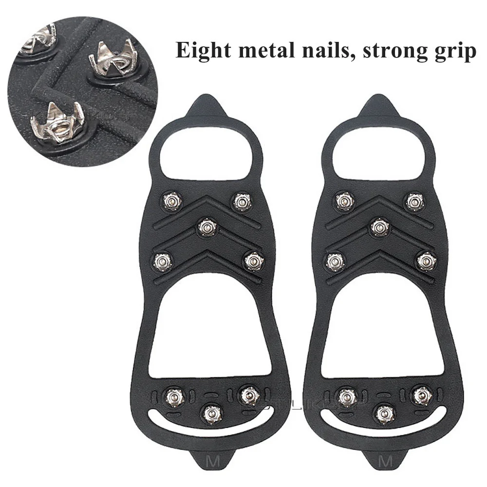 Описание: 100% Новинка и высокое качество! С 8 супер крепкими зубьями из нержавеющей стали, эти кошки идеально подходят для любой погоды и условий пола. Металлические зубья, которые безопасно встроены в каждый шип, обеспечивают полное и вытягивание при возникновении ледяных и сложных условий. Эти кошки очень легко надеваются и снимаются, и они очень надежны вокруг обуви или сапог. Упорство, которое эти силиконовые бутсы обеспечивают, обеспечивает полную защиту на нескольких поверхностях пола. Независимо от возраста, чувствуйте себя в безопасности с этими бутсами на ваших ногах и с гордыней на этих энергичных поверхностях. Предотвращение скольжения и падения на льду, полное сцепление на снегу и мокром тротуаре делают этот идеальный продукт для всех людей. Прочные галоши с хорошей эластичностью, заземленные Стальные Шпильки. Легко надевается поверх обуви без застежек и ремешков. Спецификация: Материал: Резина + нержавеющая сталь Цвет: черный Размер: M(35-40)/L(41-46) Пакет включает в себя: 1 х пара скоб. Примечание: 1. Из-за разницы в освещении и экране цвет товара может немного отличаться от изображения. 2. Замеры сделаны вручную, поэтому возможны отклонения на 1-2 см.