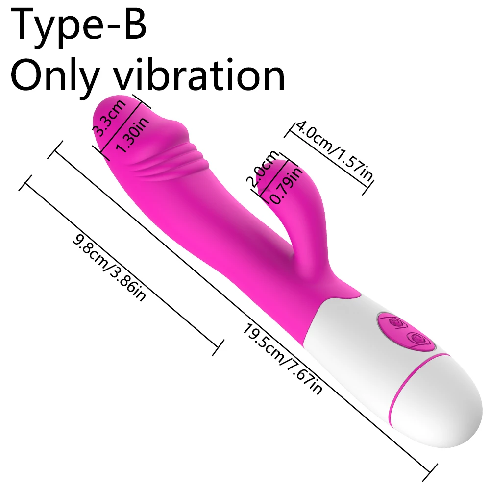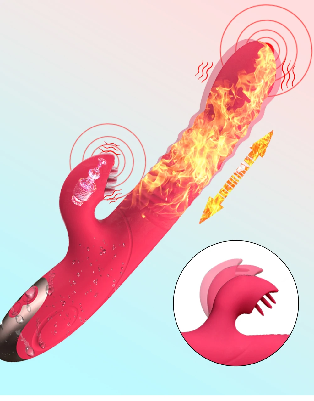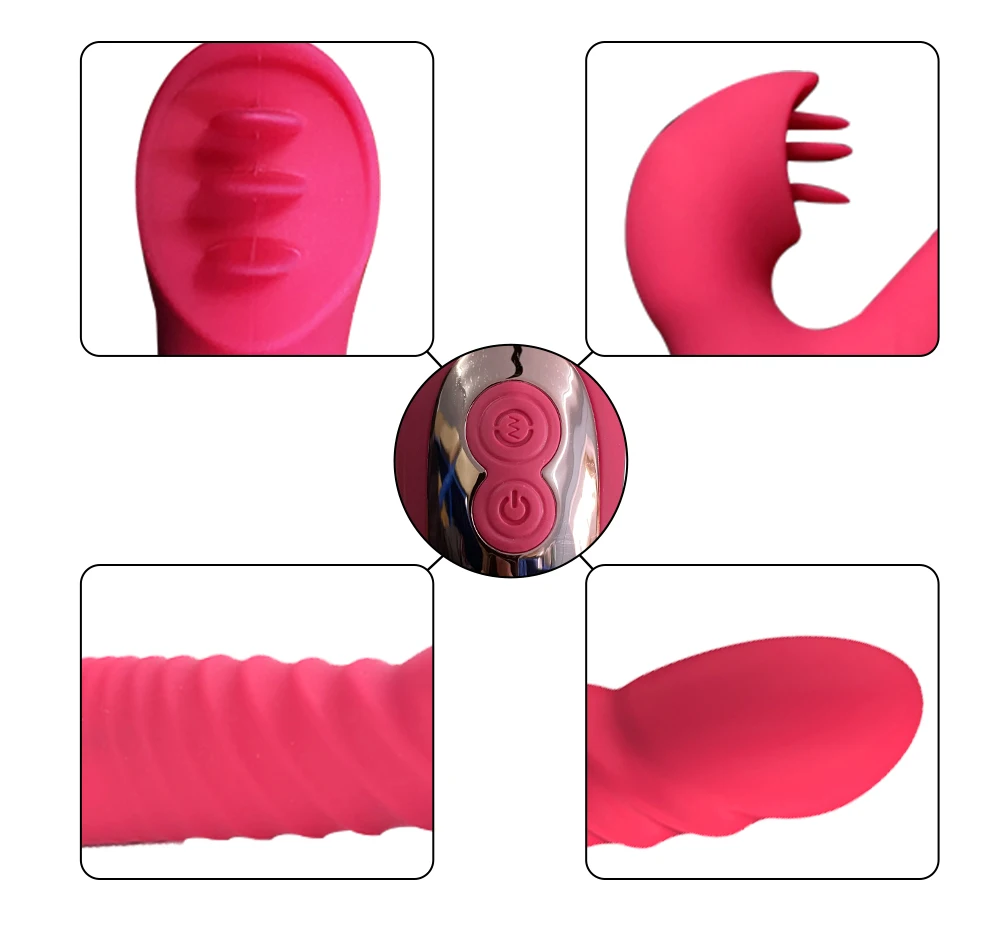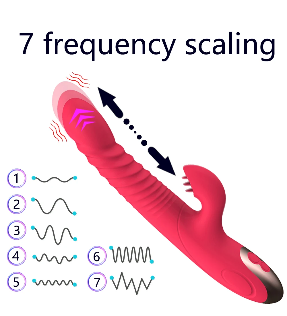 Размеры: Общая длина: 23 см/9.05in, Вставная длина 13 см/5.12in, Диаметр 3,5 см/1.38in, чистая Вес: 255g/8,9 oz Тип: язык, кролик Интеллектуальное нагревание головки 42 ℃ 7-частотная телескопическая и 8-частотная вибрация Перезаряжаемый USB Время зарядки: около 2-3 часов Время использования: около 90-120 минут
