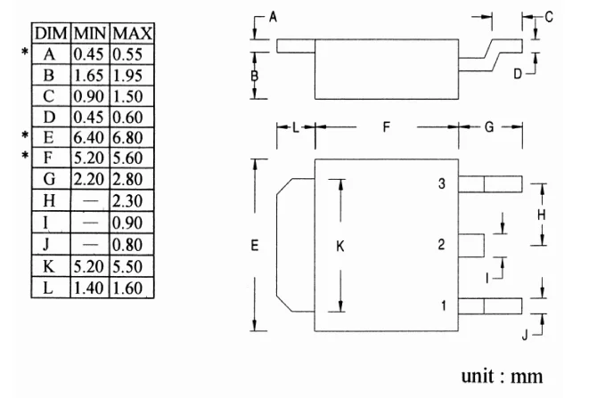 Package:TO252-3 Pitch:2.3mm IC body size:6.1mm Tip to tip:10.1mm Operating Temperature:-45degree~+175degree