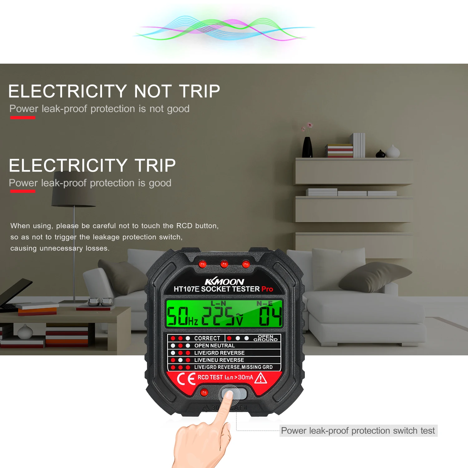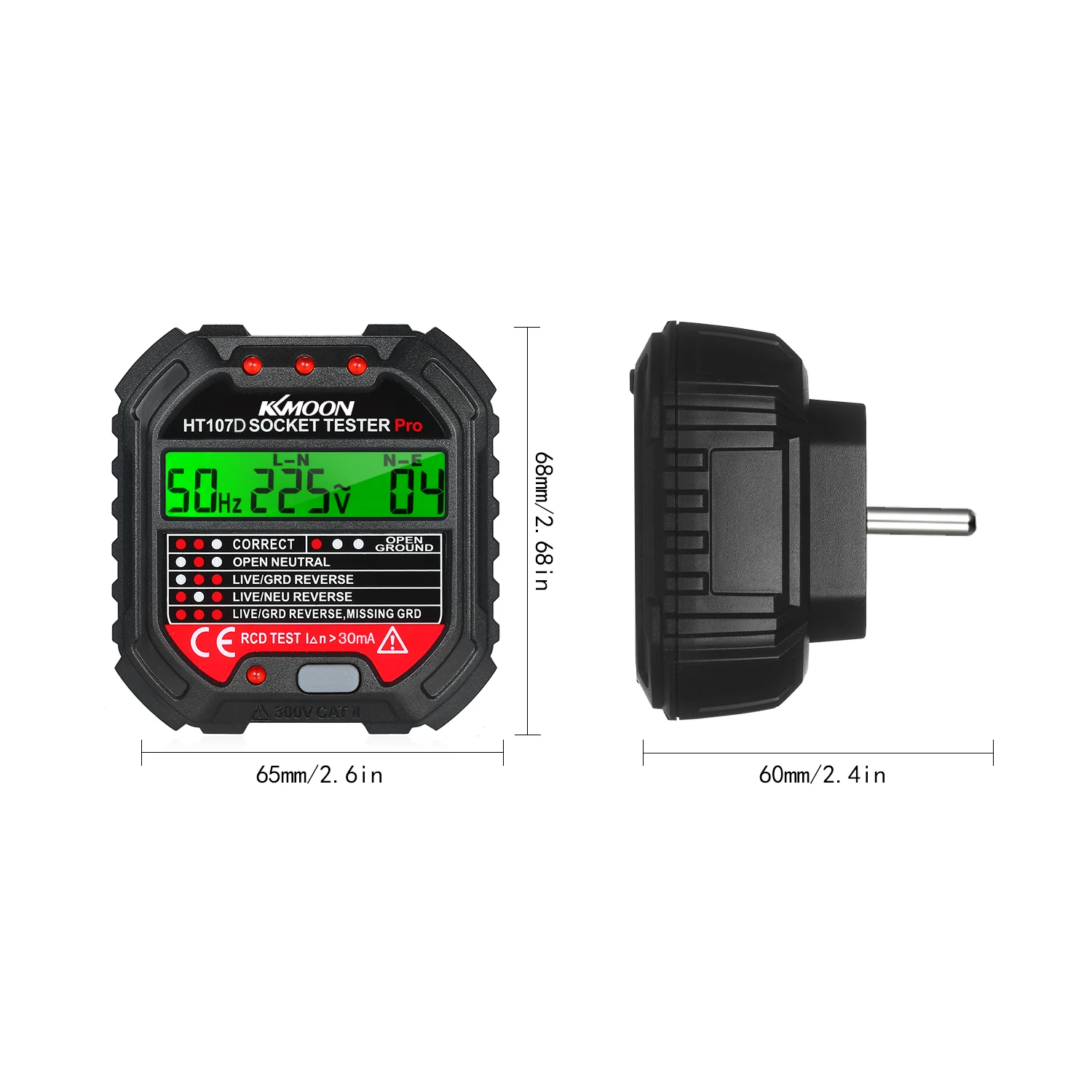Портативный тестер электрических розеток --- Расширенный тестер розеток для быстрого обнаружения правильного или нет подключения к розетке. Компактный размер, легкий и удобный в использовании. С ЖК-дисплеем с подсветкой напряжения для тестирования напряжения.