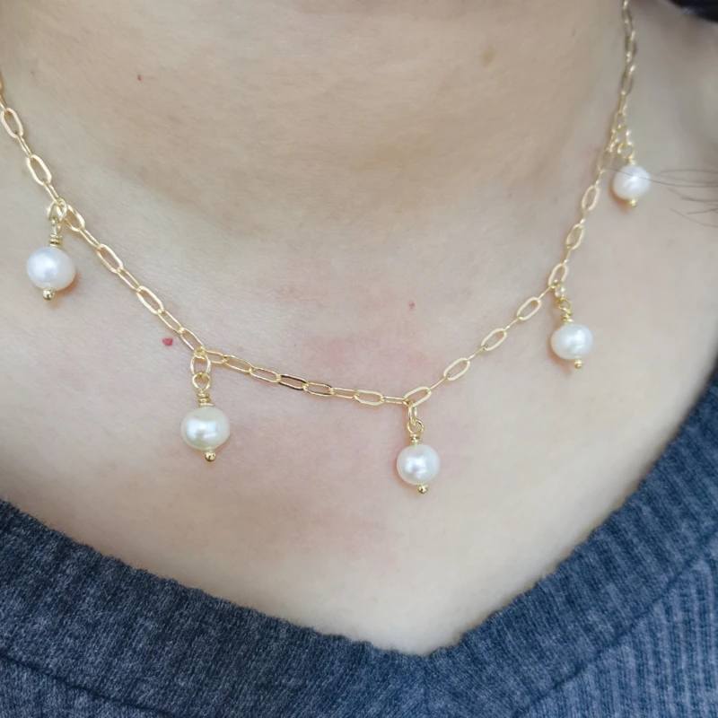Колье с натуральным жемчугом, 14 к, золотое ожерелье, ручная работа, жемчужные подвески, колье, Femme Perle Collar Mujer Perla Boho, ожерелье Ручная работа Основной камень: натуральный пресноводный жемчуг Цвет жемчуга: белый жемчуг Размер жемчуга: около 6 мм Часть золотого цвета: позолоченная цепочка и Застежка 14 к