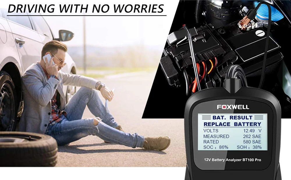 Новейший BT100 PRO 12 вольт анализатор батареи от Foxwell предназначен для тестирования 12 В регулярных затопленных, AGM плоских пластин, AGM спиральных и гелевых батарей в качестве недорогого решения. Это обеспечивает быстрое, легкое и доступное решение для техников для проверки здоровья батареи и неисправностей.