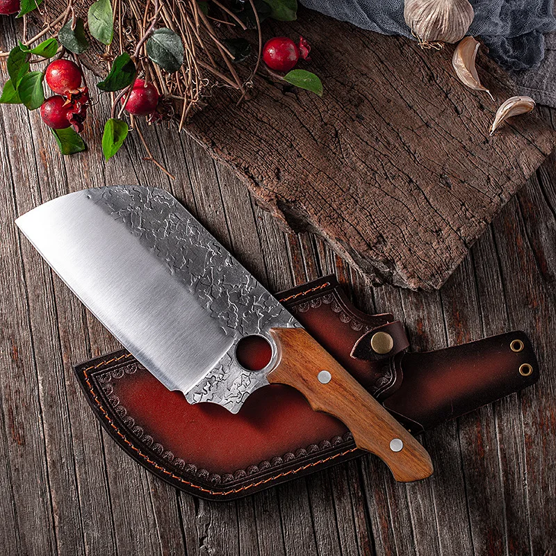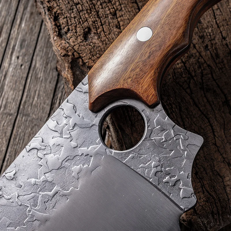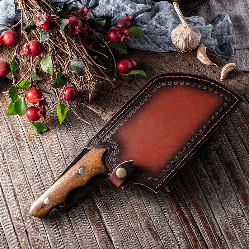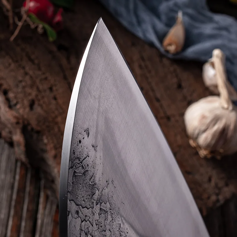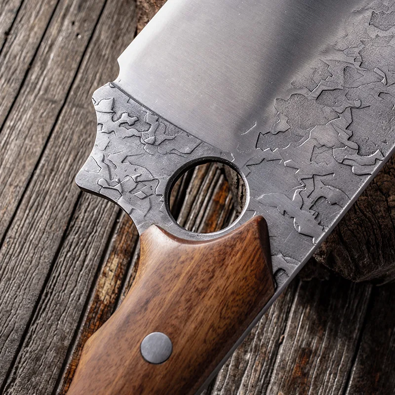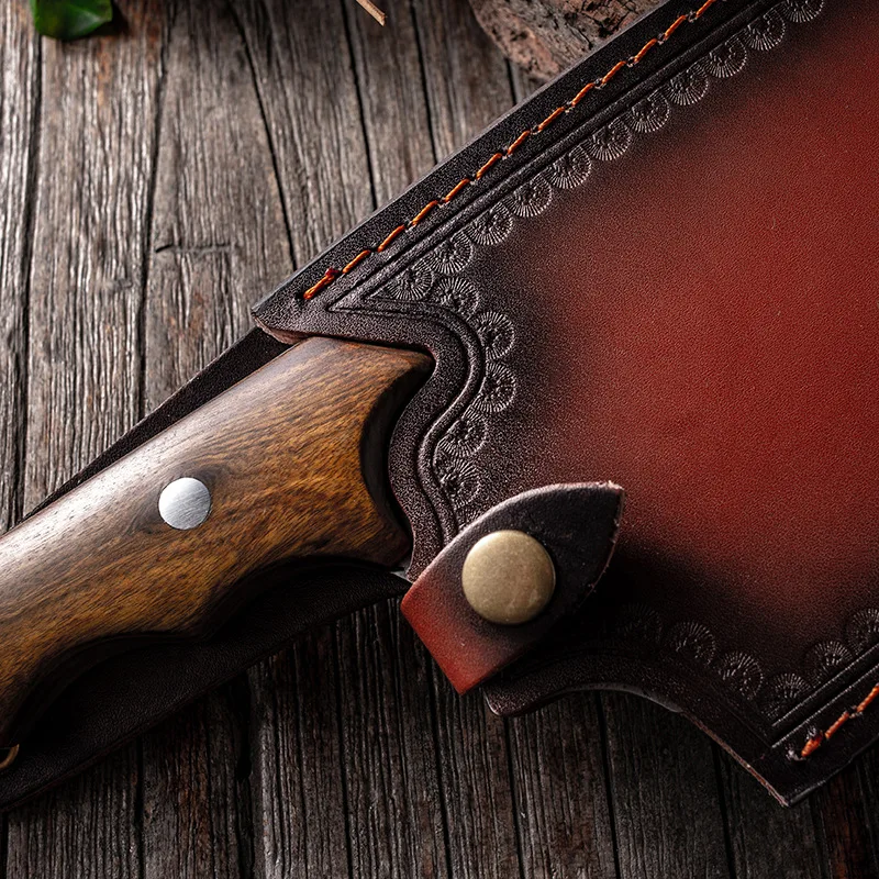 Материал лезвия: нержавеющая сталь 5Cr15mov Материал ручки: дерево с куриными крыльями + Медный гвоздь Натуральное куриное крыло Деревянная ручка из натуральных куриных крыльев славится своей уникальной текстурой и закрепляется высокотемпературным уплотняющим воском для улучшения цвета и долговечности. Волнистый дизайн ручки В соответствии с искусственным дизайном, ручка в форме волны используется для увеличения противоскольжения и комфорта. Медные заклепки Luban Craft. Прочный, прочный и устойчивый к коррозии. Процесс почернения слой Процесс чернения делает поверхность лезвия оксидным слоем для достижения антикоррозионного эффекта. Кованый узор молотка После высокотемпературной ковки улучшается плотность и чистота стали, благодаря чему значительно повышается твердость и прочность стали. Ручное водяное фрезерование Лезвие разглаживается вручную водой, лезвие гладкое, острое, устойчивое к порезам и легко шлифуемое.