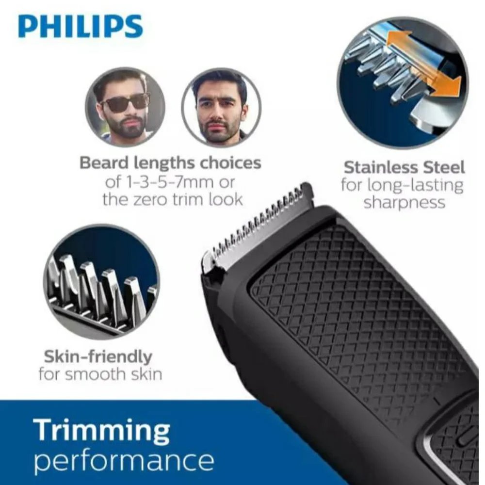 Триммер для бороды Philips 1000 обеспечивает контроль и постоянную производительность. Точность от 1 мм до 7 мм. Легко использовать с эргономичным дизайном, легко чистить Съемные лезвия и USB зарядка для гибкости. Создан для использования без масла.