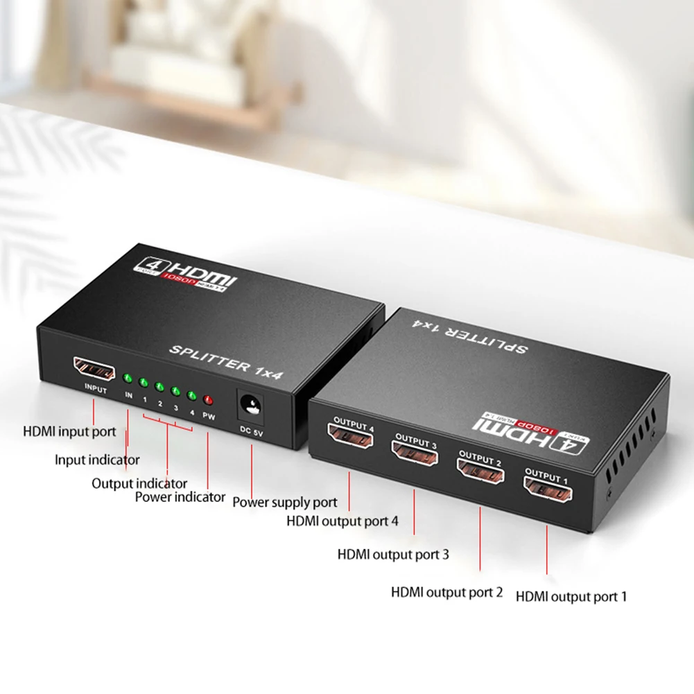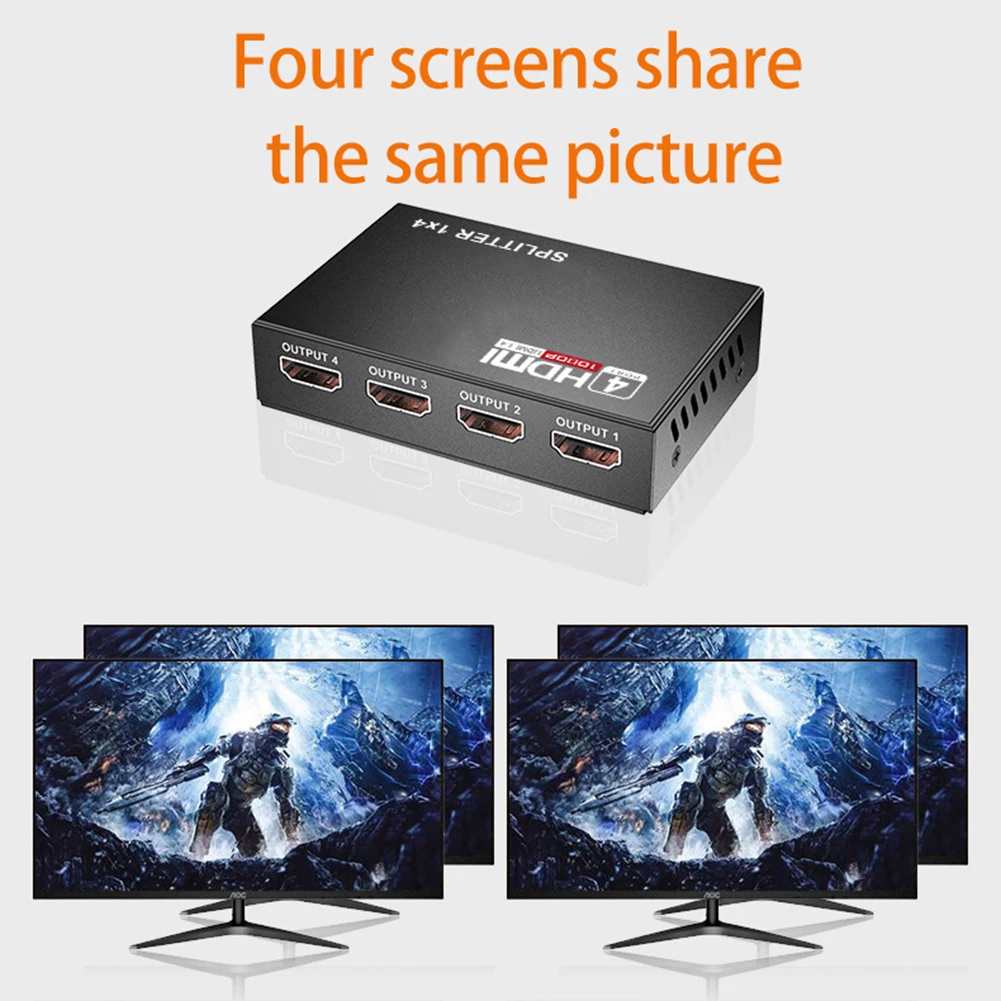 O diкозырек HDMI Permite A дистрибутива de Sinais HDMI de Caixas Austadas, Leitores de DVD, Leitores de D-Vhs e outros dispositivos de HDTV em uma saida de sinal HDMI consistance e sincrona de vivos 2/4. Osusuarios podem conectar o sinal de saida ao projetor HD, DTP, TV LCD HD e outros dispositivos para exibir de forma sincrona.