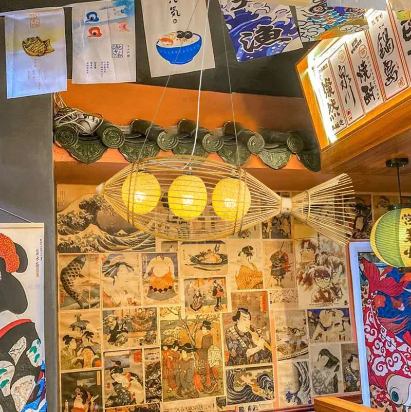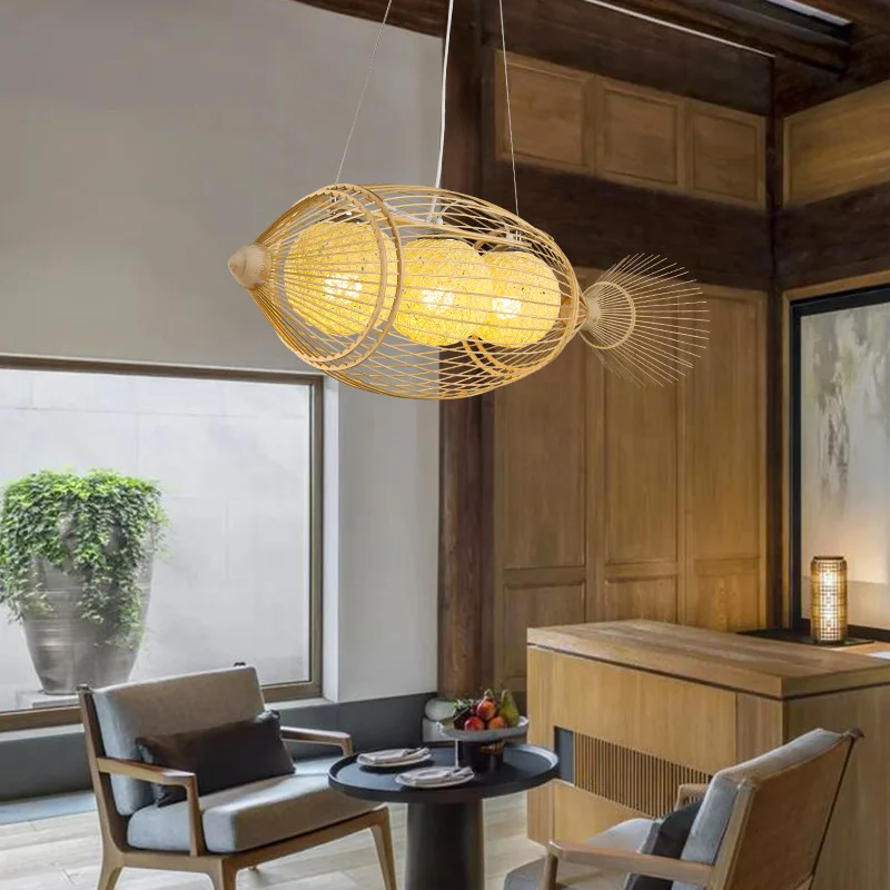 В японском стиле бамбуковое Тканое люстра в форме рыбы чайная комната горячий горшок Ресторан Юго-Восточной Азии коммерческий Ресторан люстра