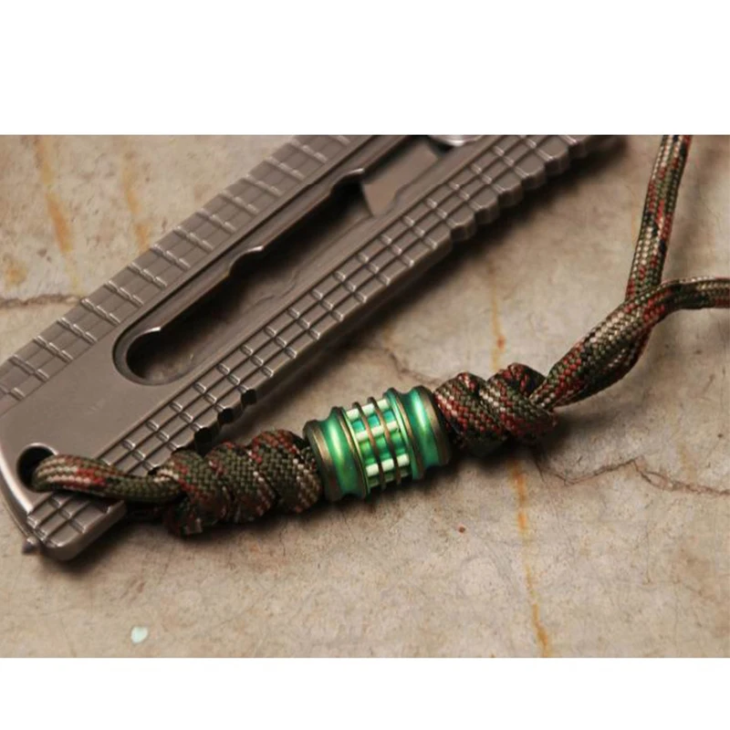 Может пройти через два 7-ядро зонтик веревки, не очень плотный или свободного кроя, только правильный путь. Чистый титановый материал, низкая плотность, высокая прочность, устойчивость к коррозии и другие заметные преимущества, являются экологическими металлами, и в организме человека в течение длительного времени не возникает аллергических и иммунных реакций.
