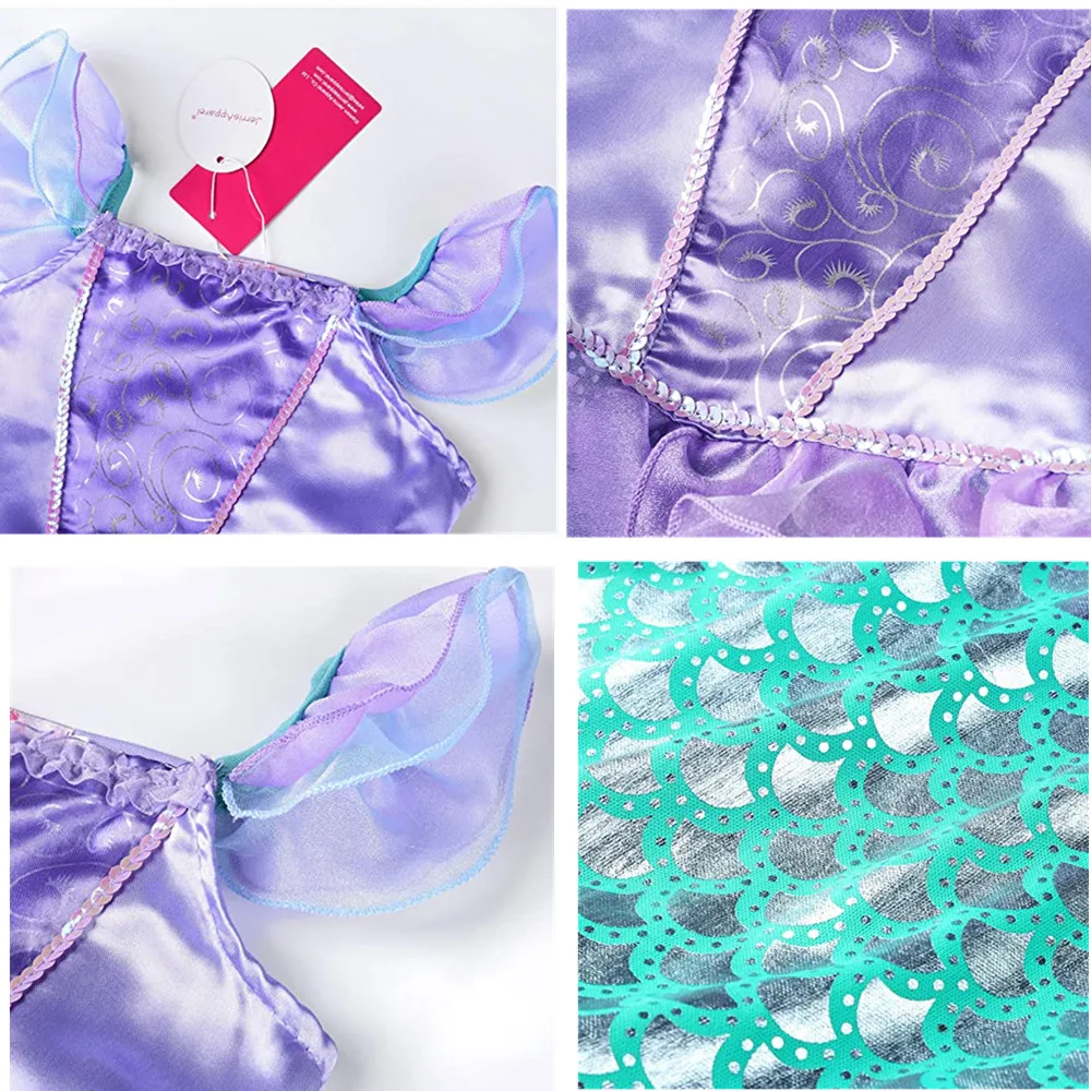Платье принцессы Ариэль для девочек с русалочкой; Маскарадные костюмы для маленьких девочек; Комплекты платьев Русалочки; Детская одежда для дня рождения