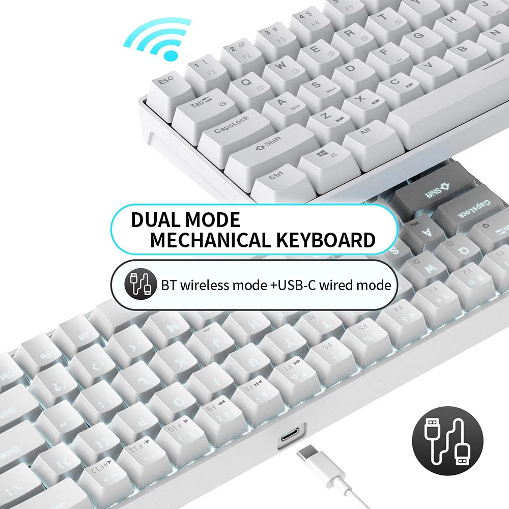 Двухрежимная клавиатура, BT + проводной интерфейс Type-C, двойное соединение подходит для нескольких устройств. Несколько устройств можно использовать с бесшовным переключением.