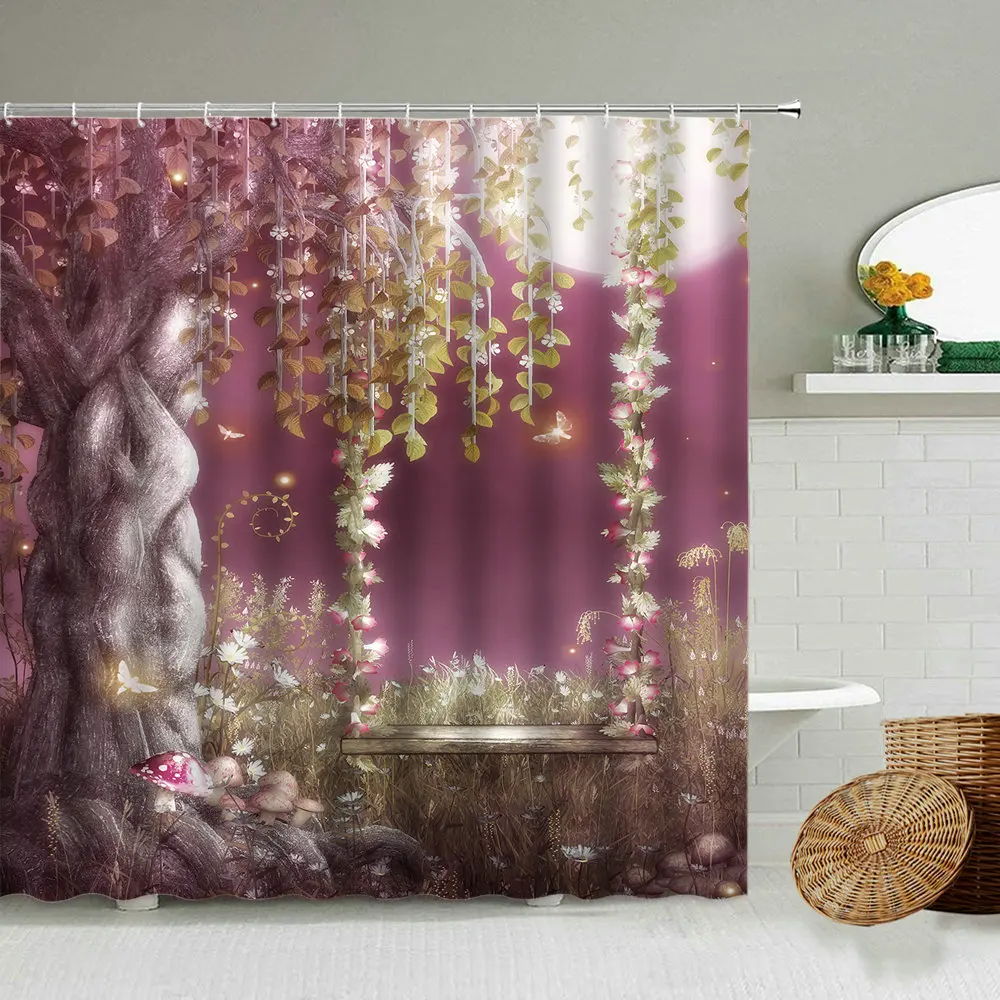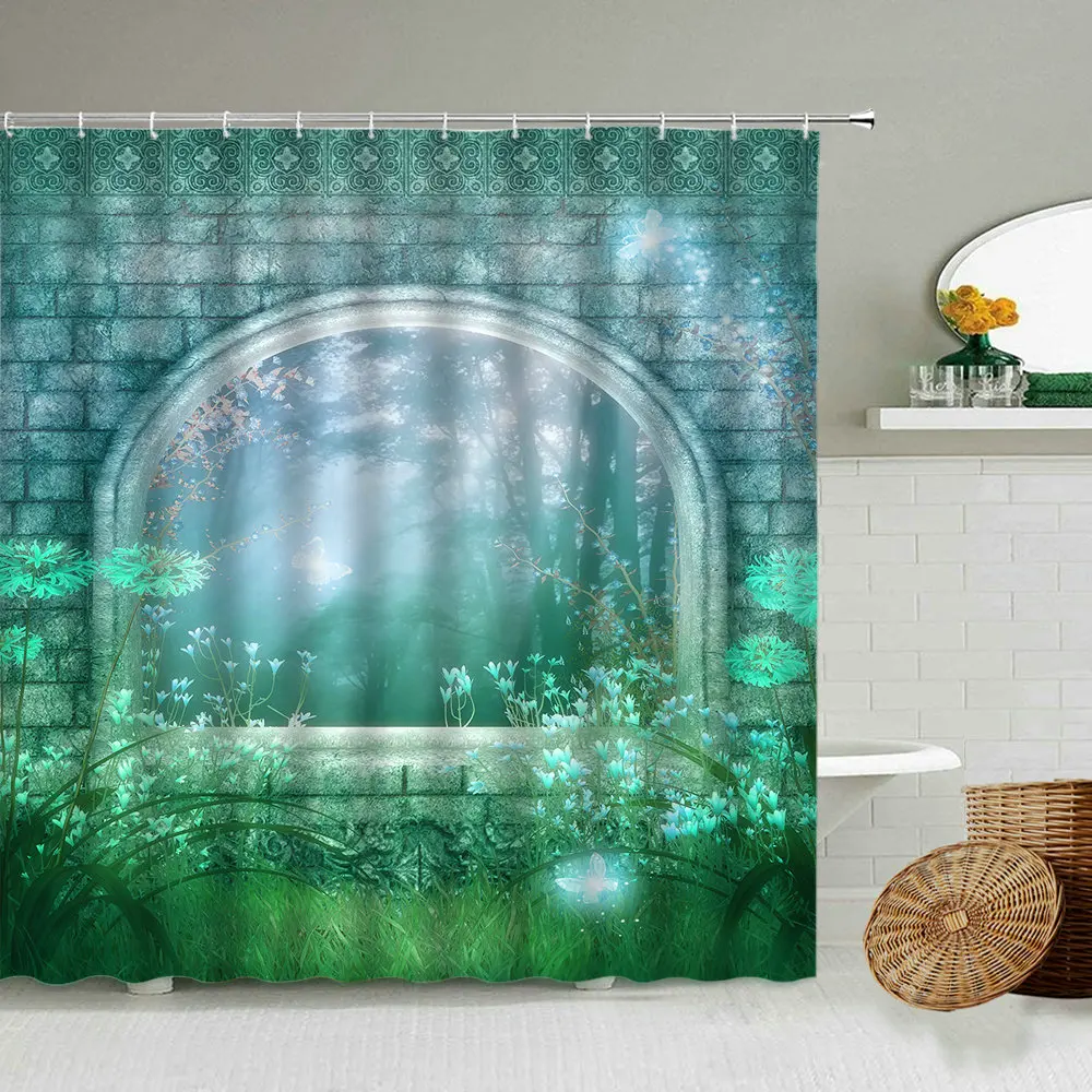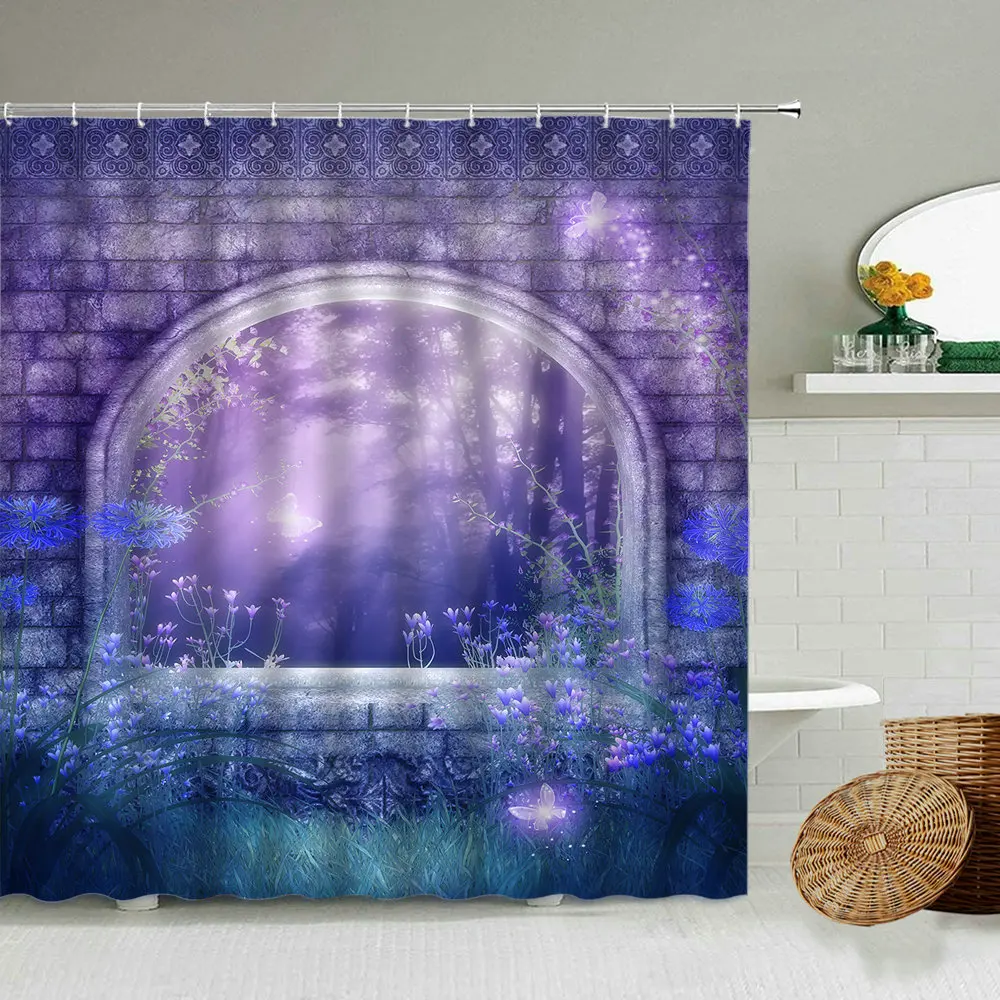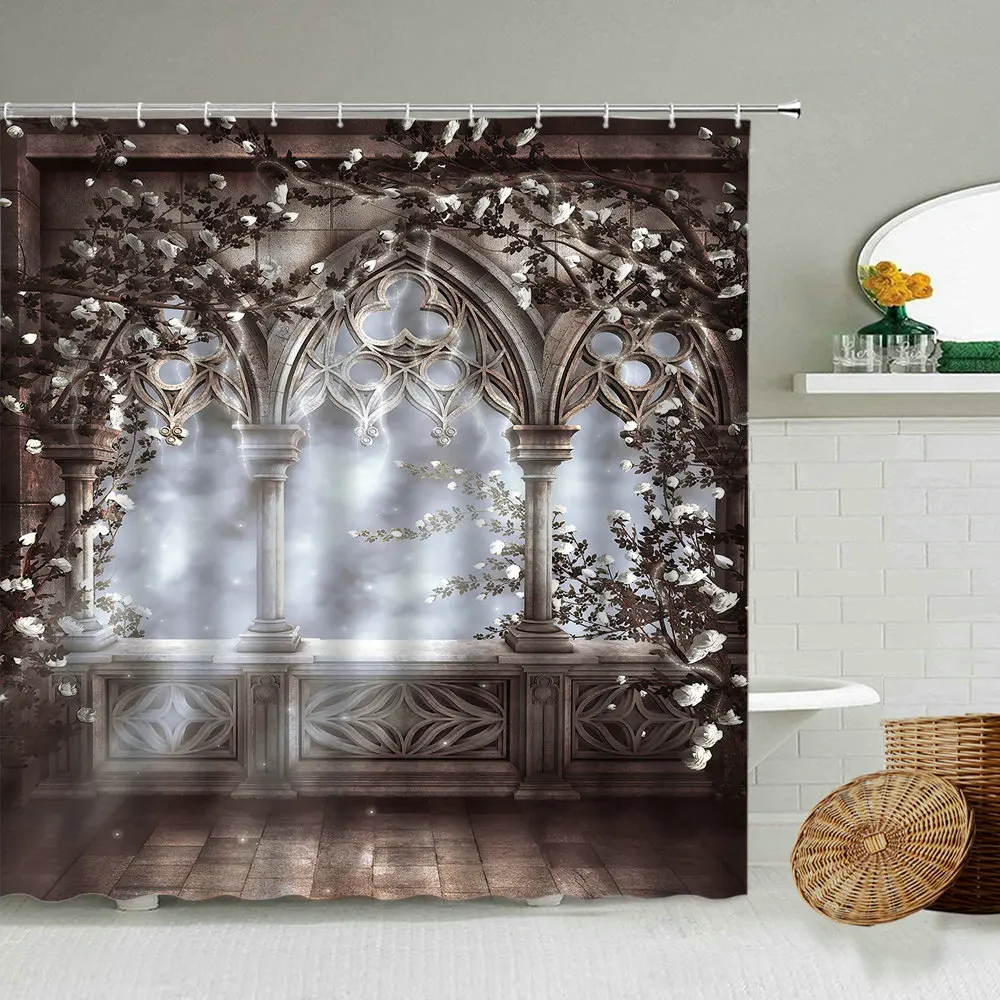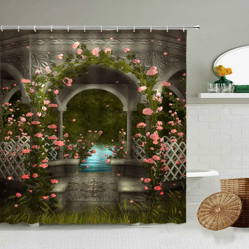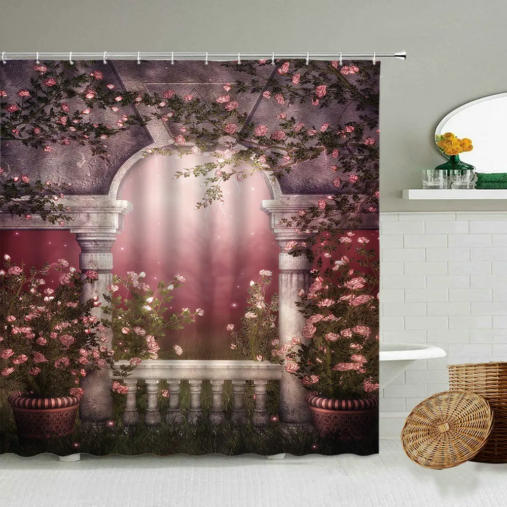 Европейская мечта архитектура роза цветок занавеска для душа романтическая розовая сказка ванная комната затемненный водонепроницаемый экран с крючком