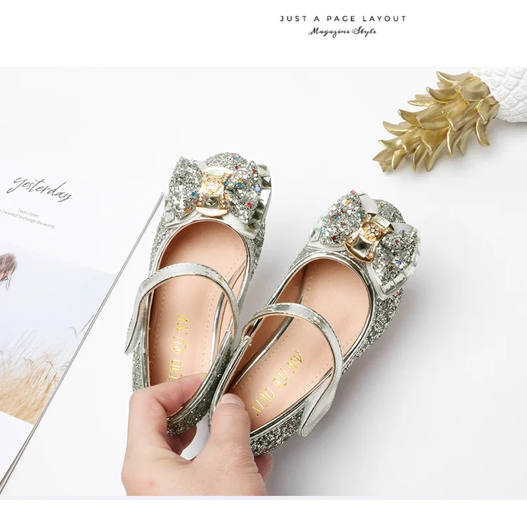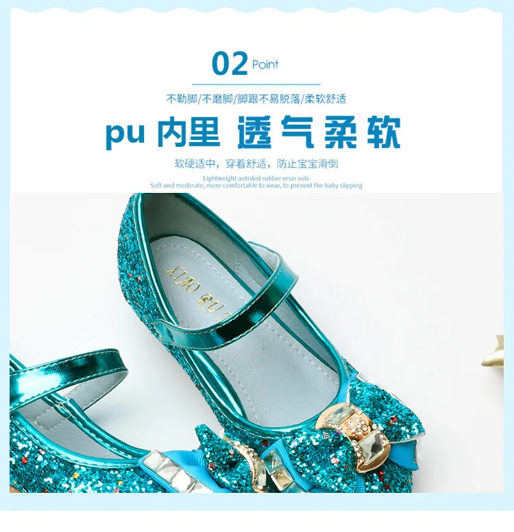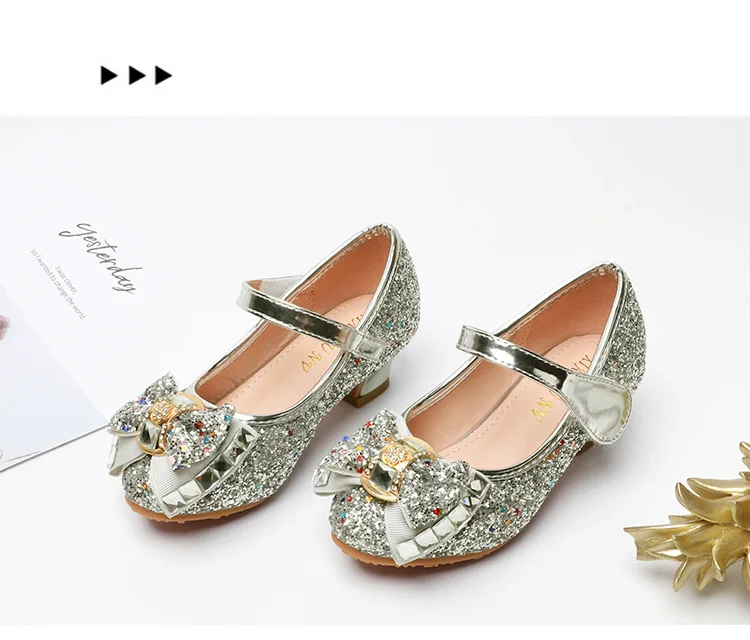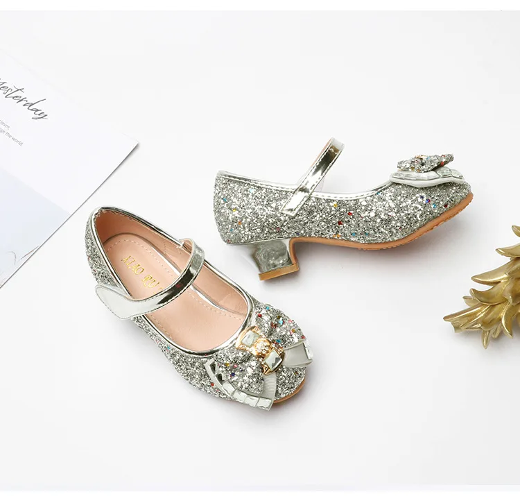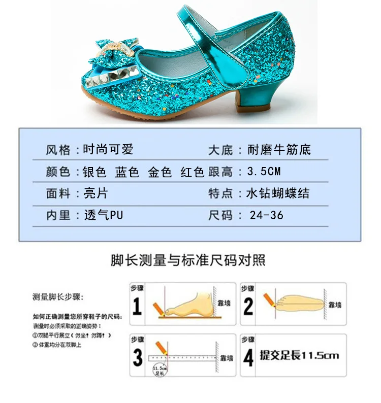 Обувь принцессы с блестками на высоком каблуке для девочек; Цвет синий, серебристый, розовый, золотой
