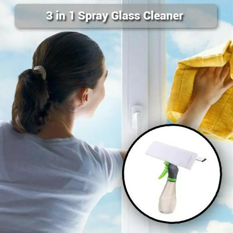 Многофункциональный дизайн-Ракель + скребок для окон из микрофибры + распылительная бутылка.